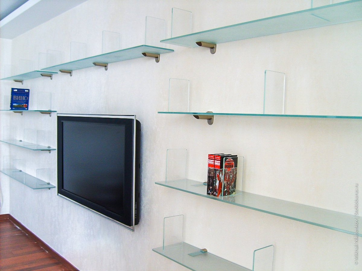 Стеклянные полки в гостиную