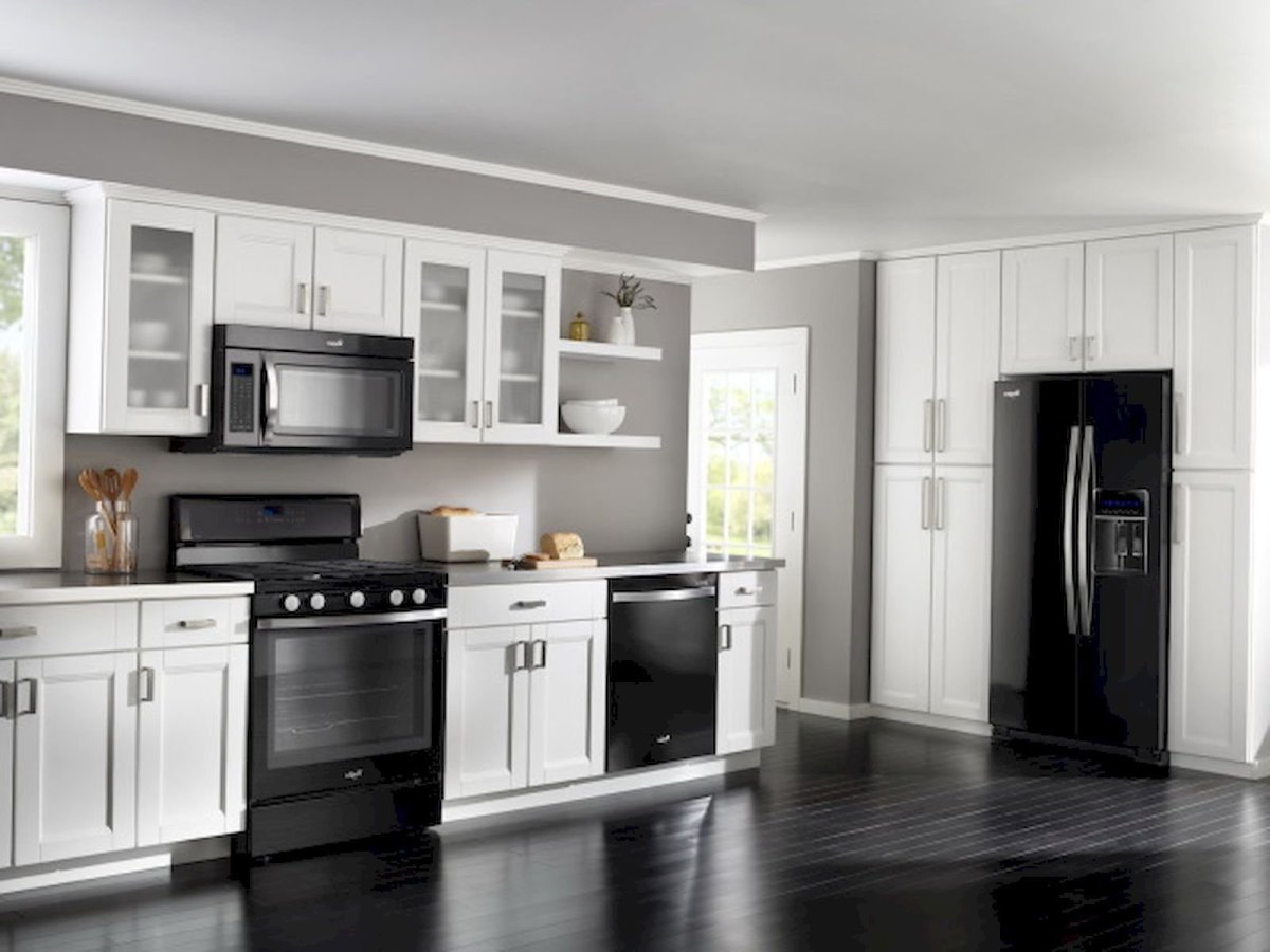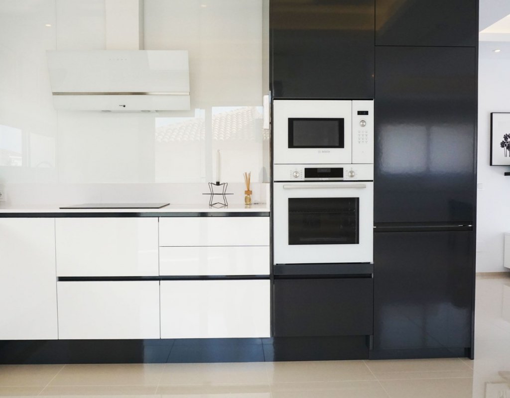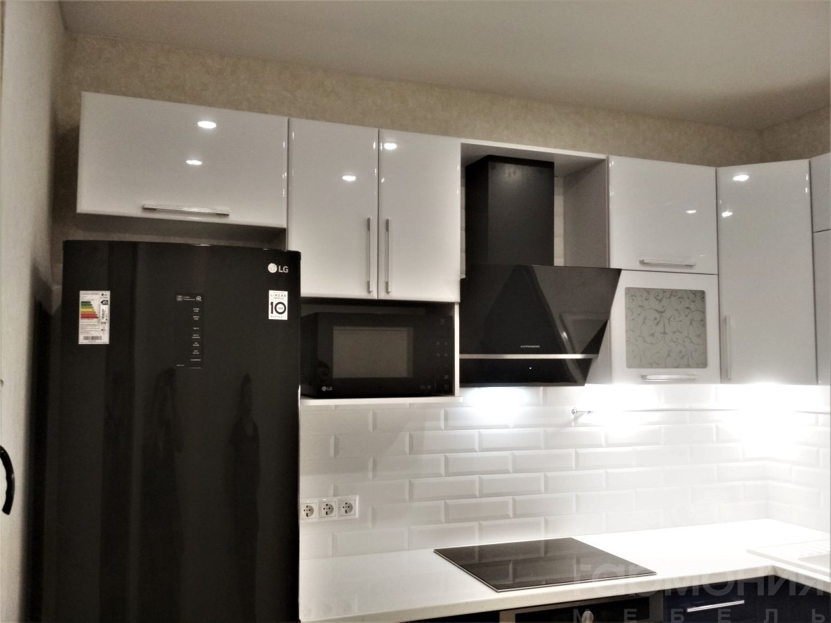 Белый кухонный гарнитур с черной техникой