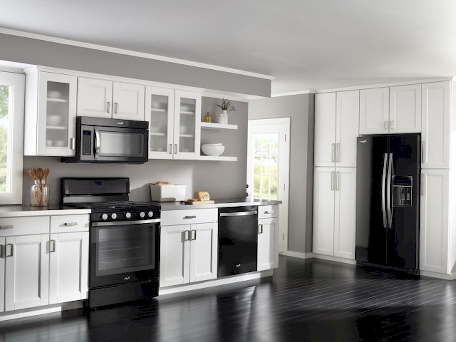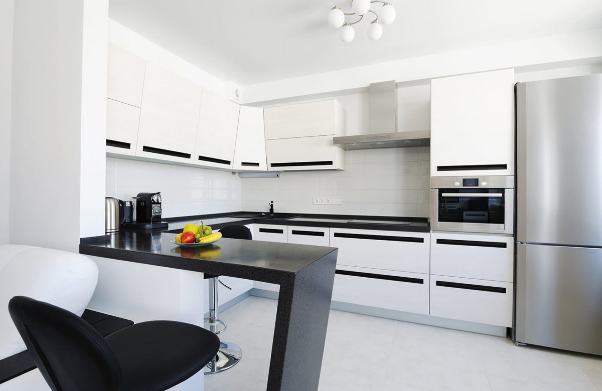 Белая кухня с черной техникой