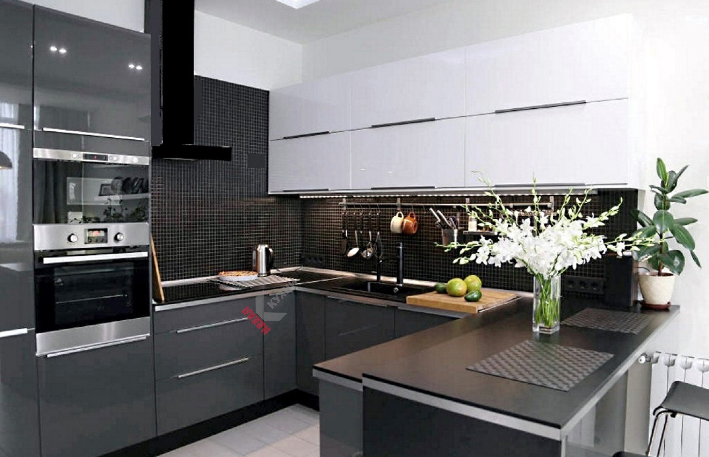 Бело черная кухня