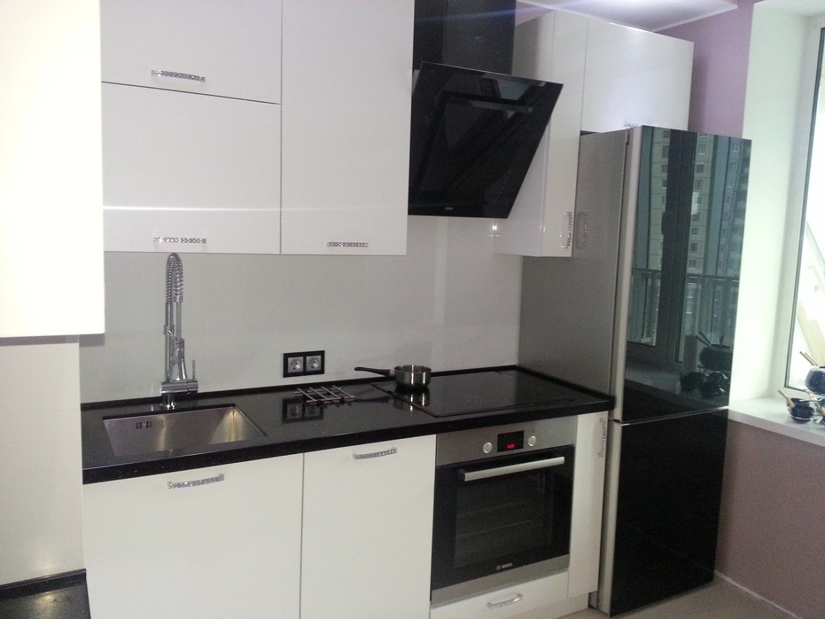 Белый гарнитур с черным холодильником