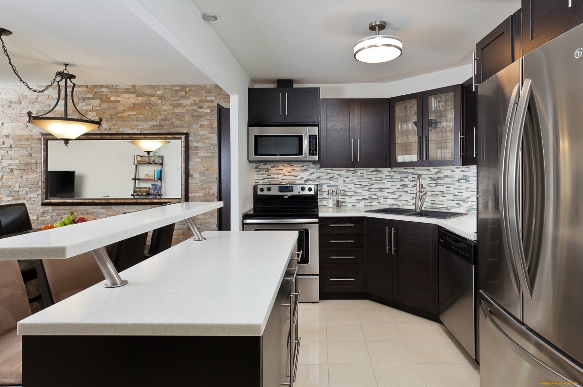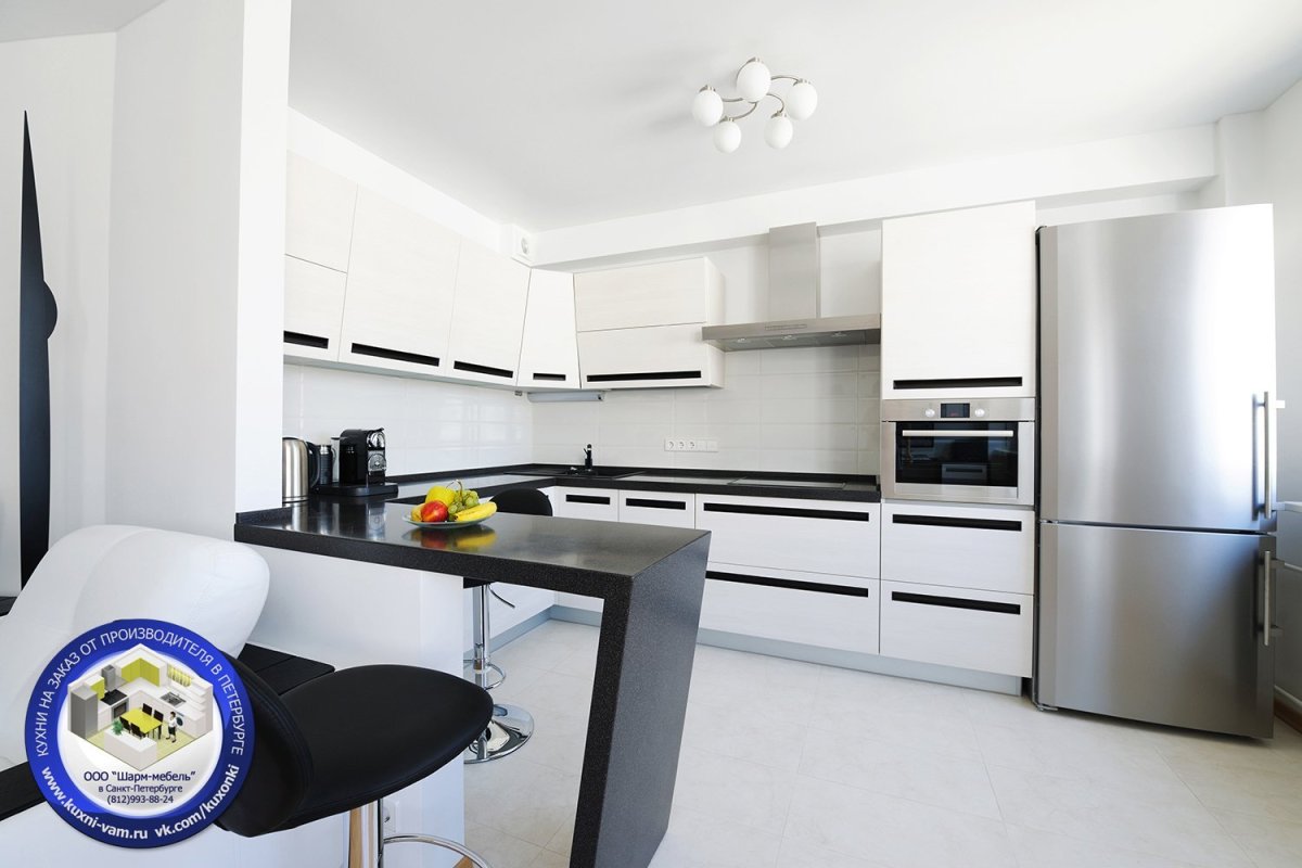 Кухня с барной стойкой чёрно-белая