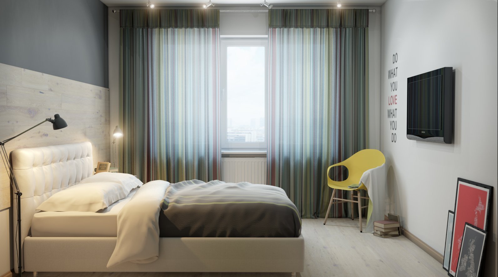 Стиль Контемпорари в интерьере спальни в светлых тонах