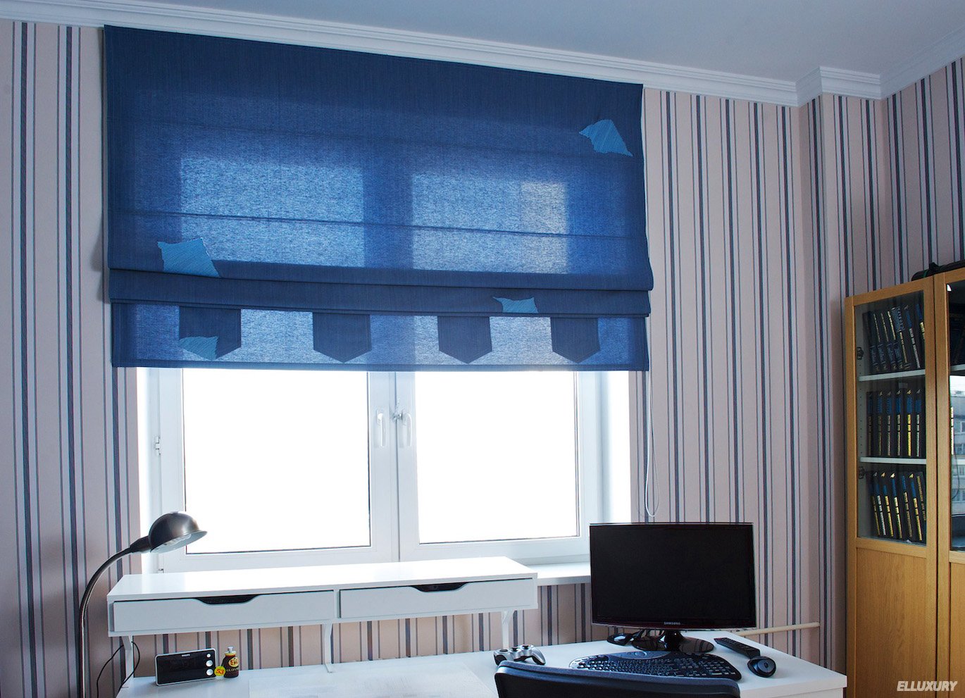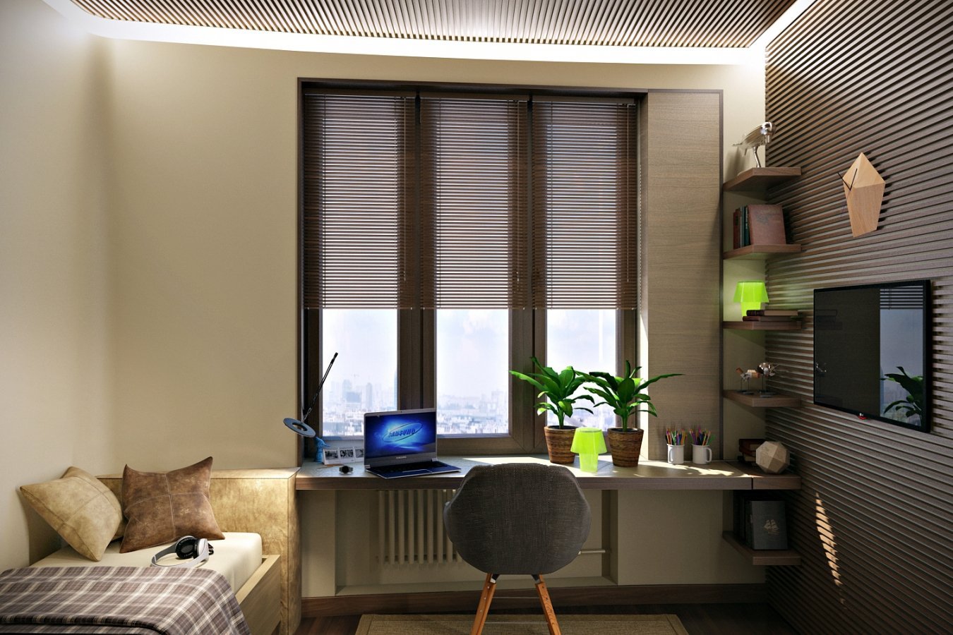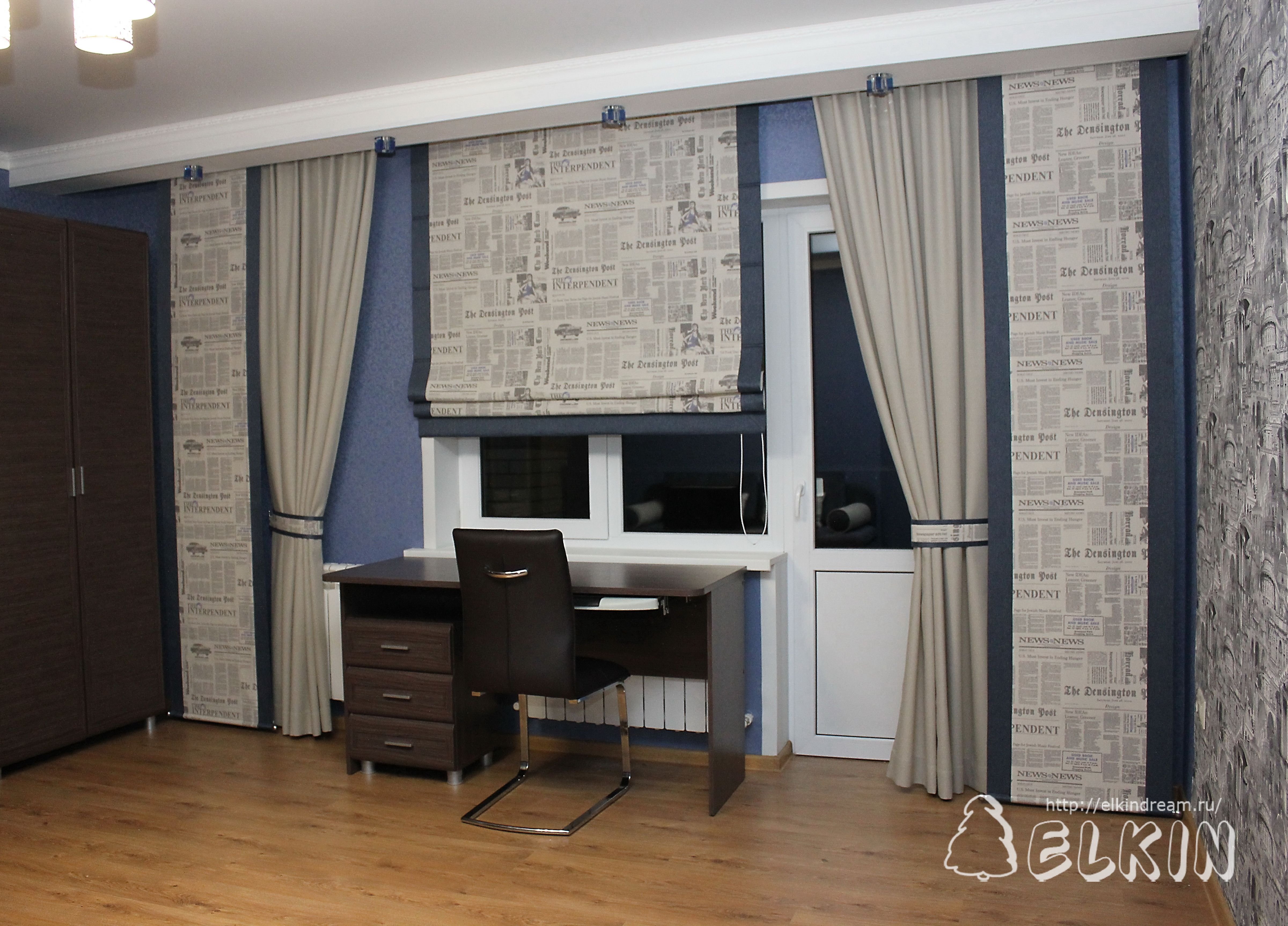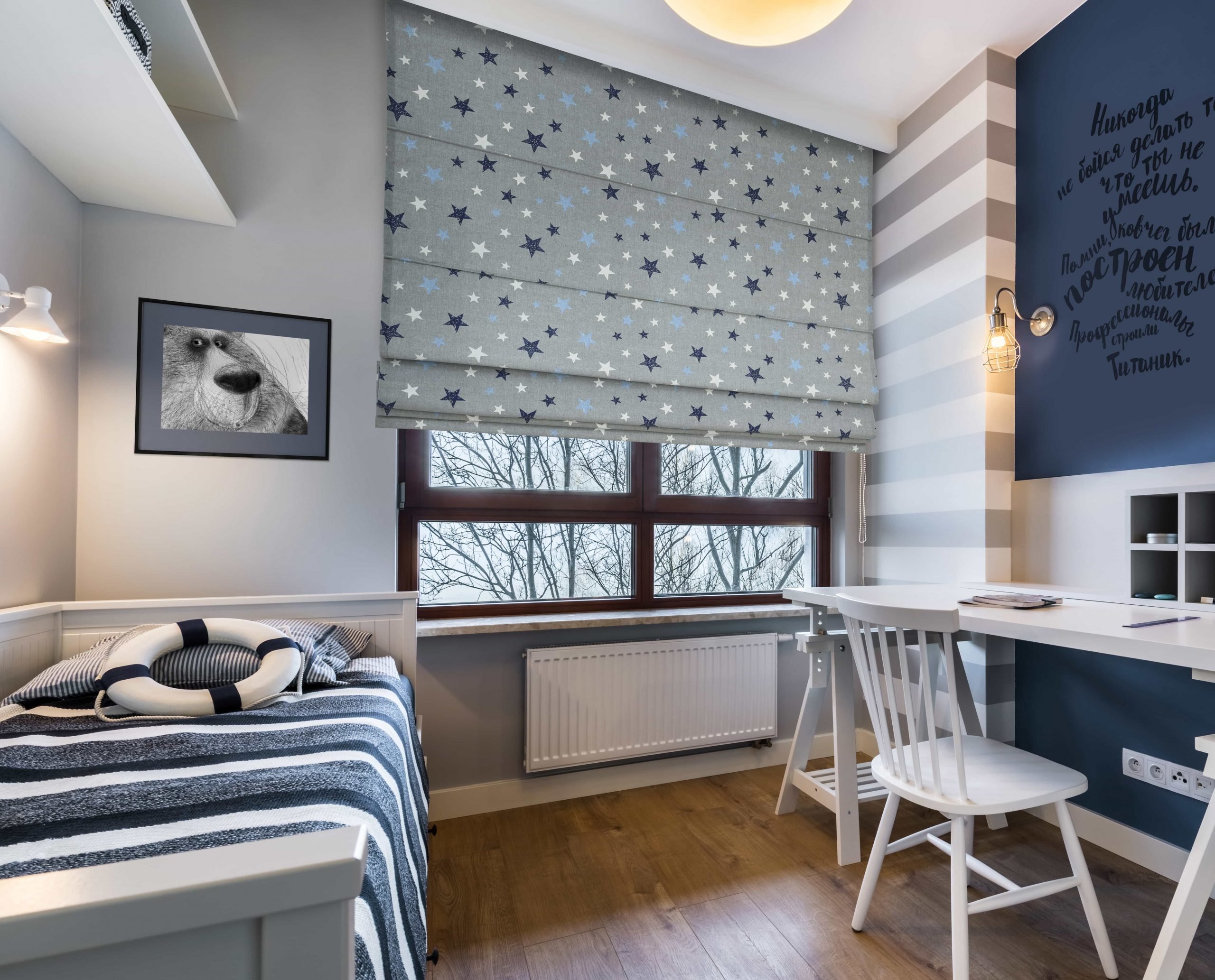 Римские шторы в коричневом цвете в спальне у подростков мальчиков