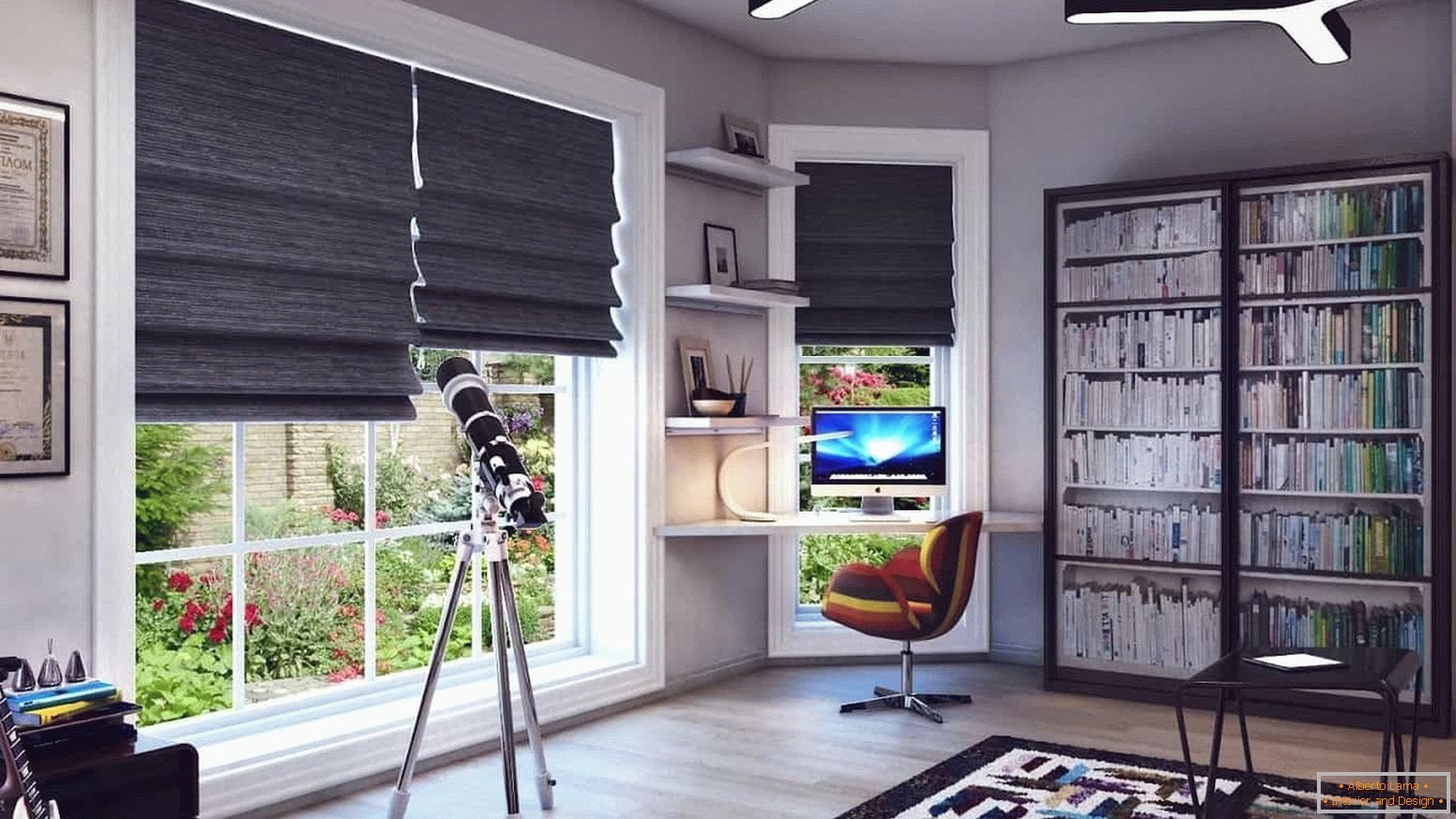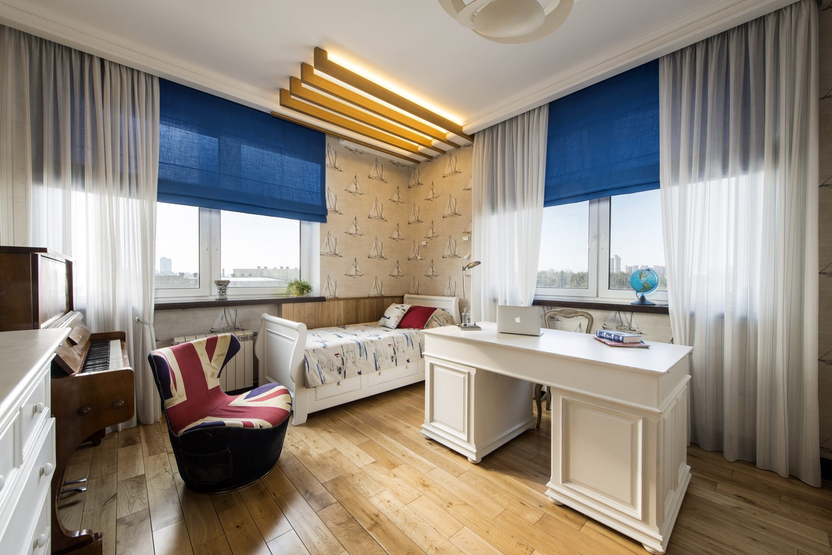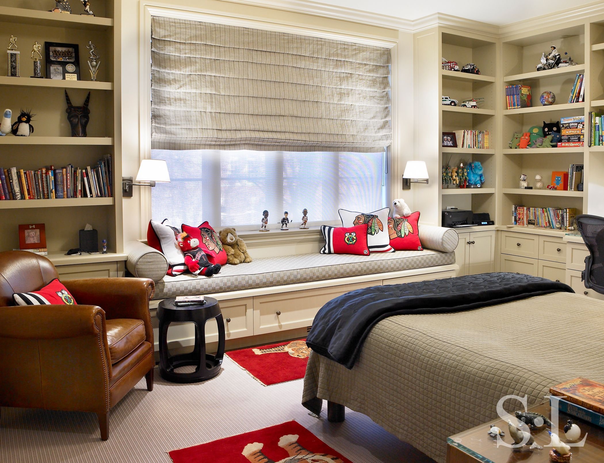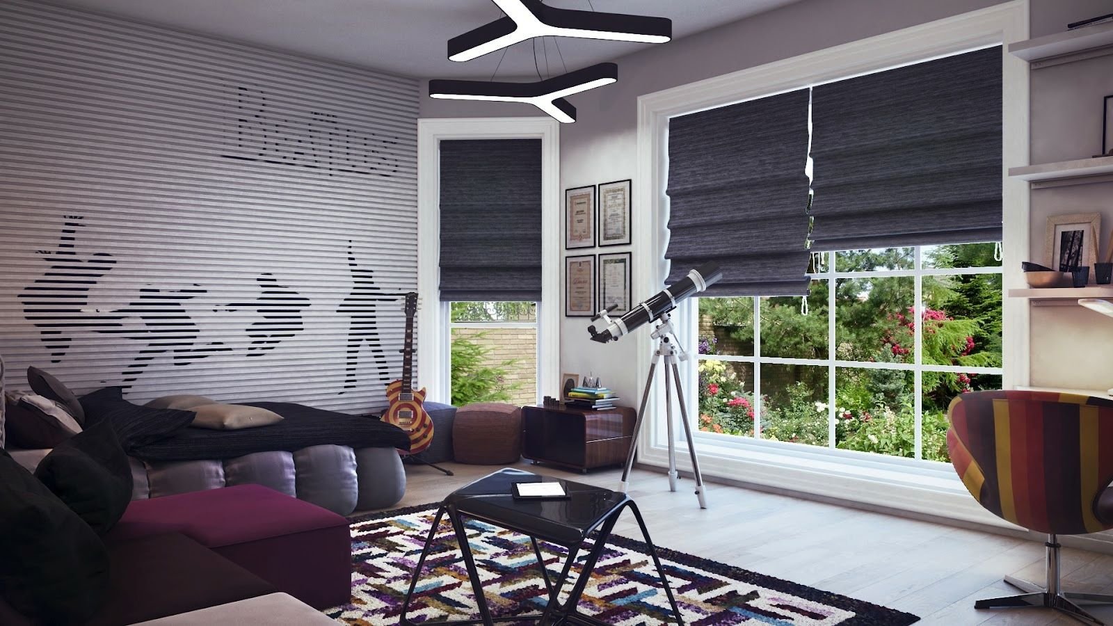 Римские шторы в коричневом цвете в спальне у подростков мальчиков