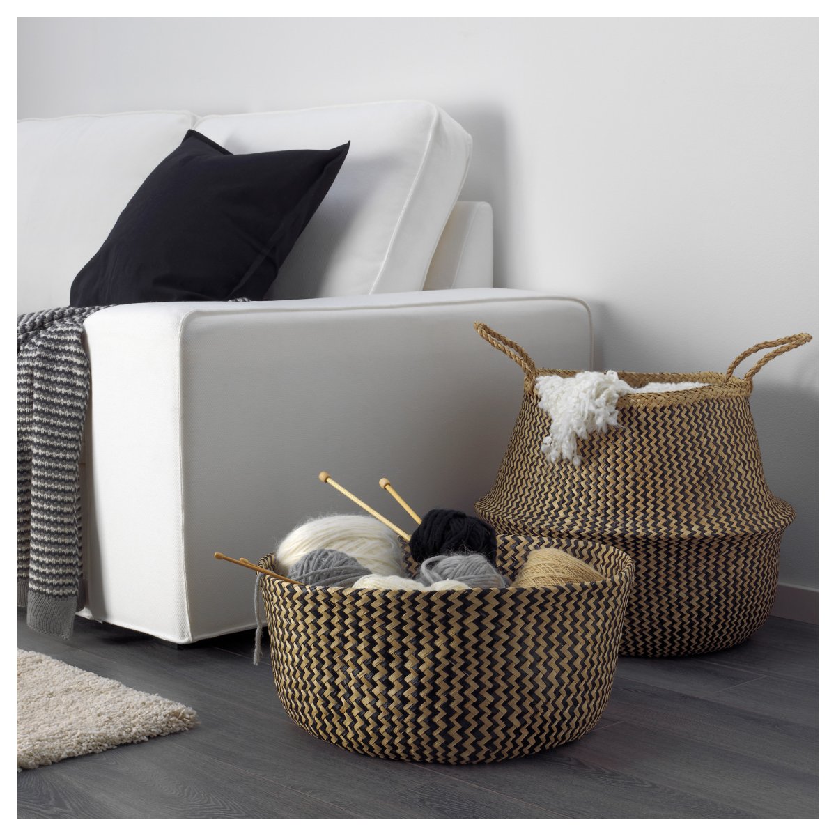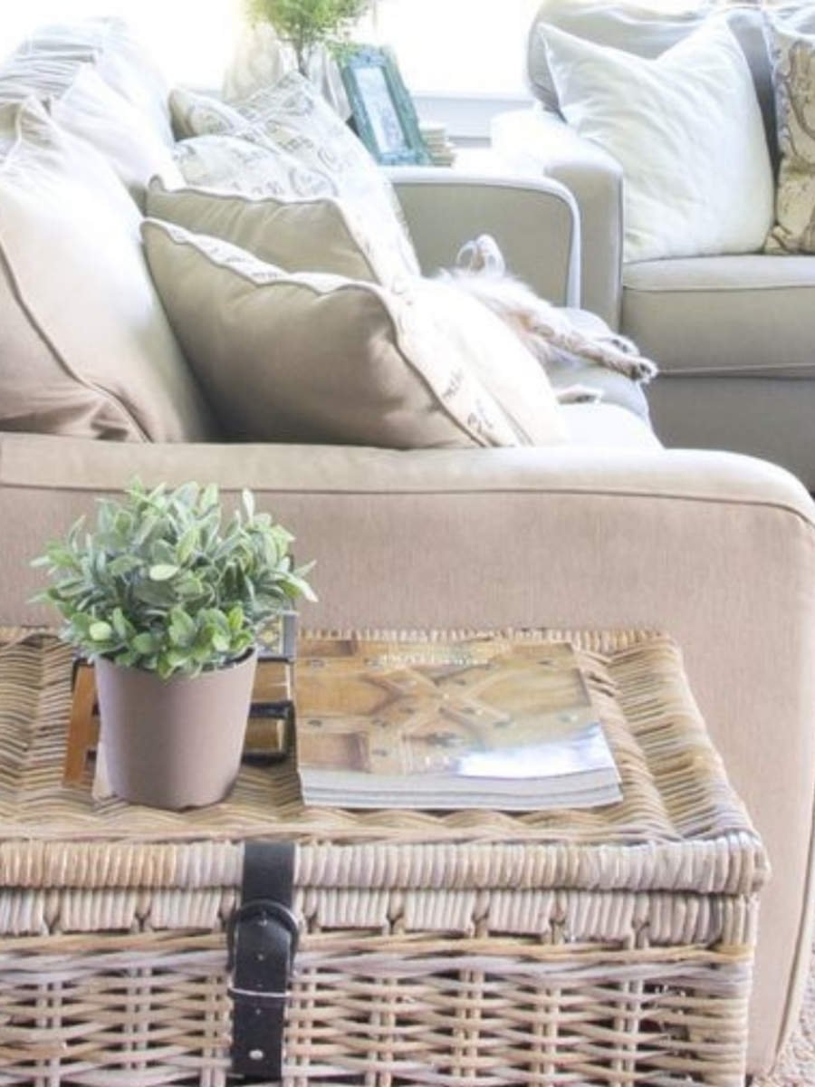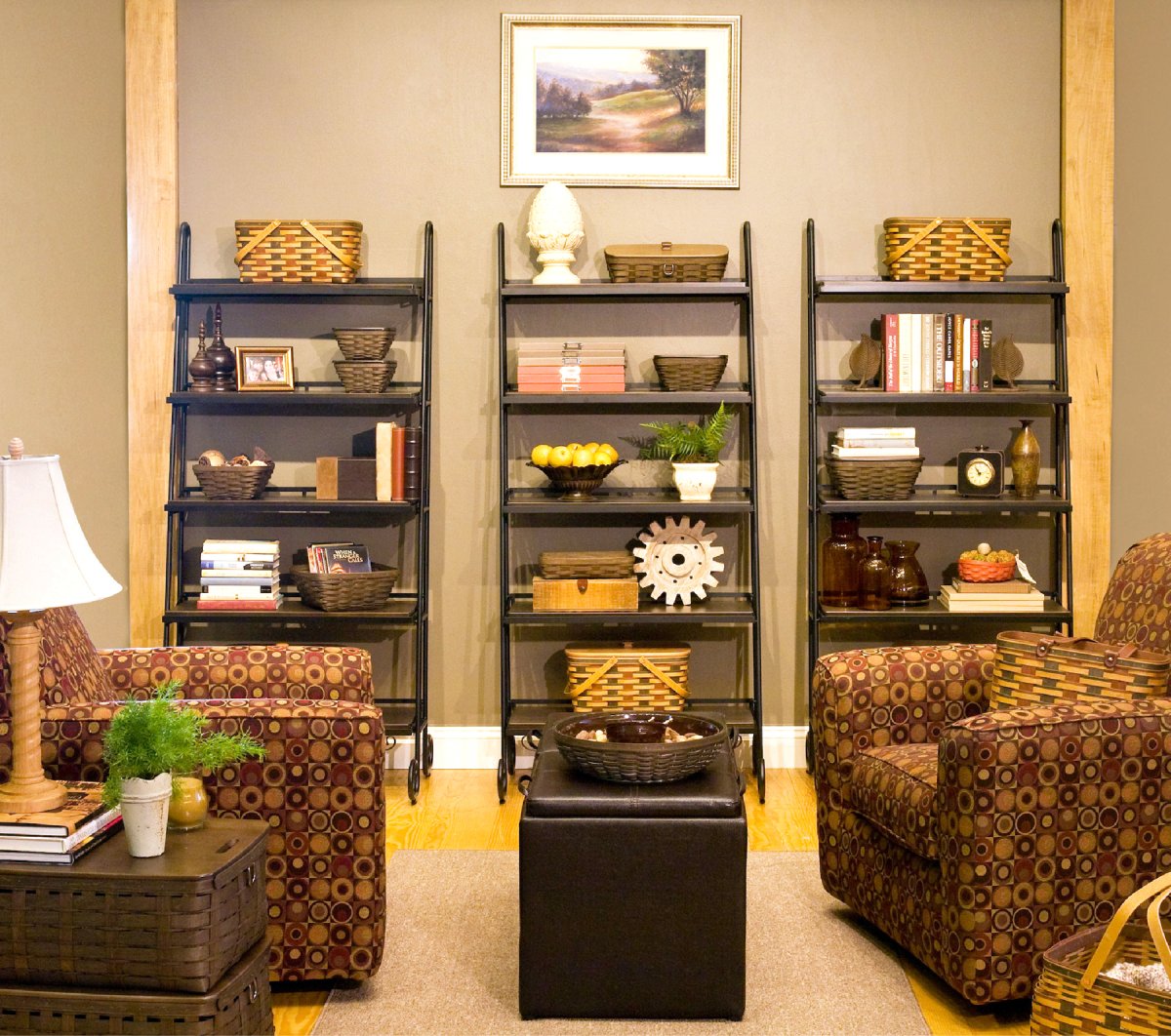Плетеные корзины в интерьере гостиной