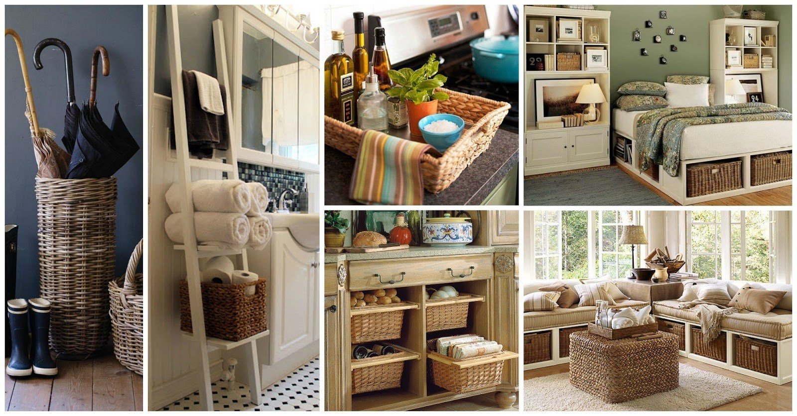 Плетеные корзины в интерьере в стиле Кантри