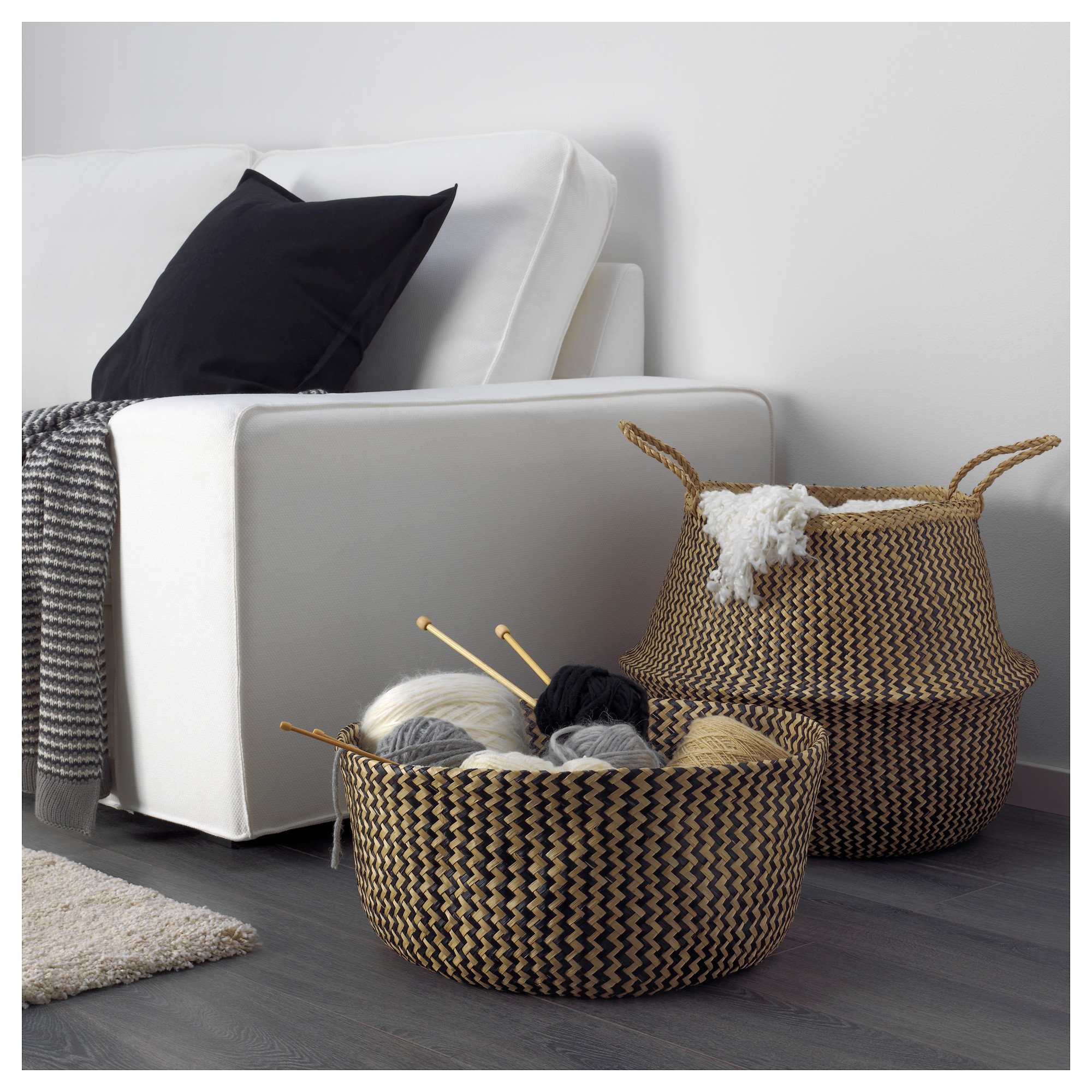Корзины в интерьере гостиной