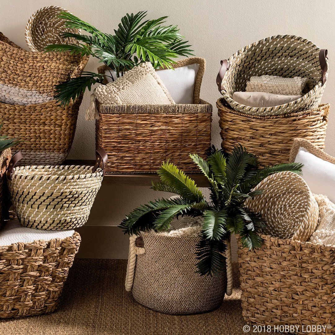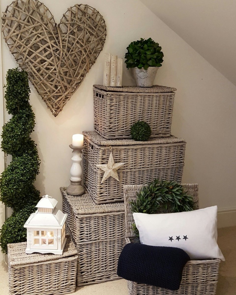 Плетеные корзины и ящики в интерьере