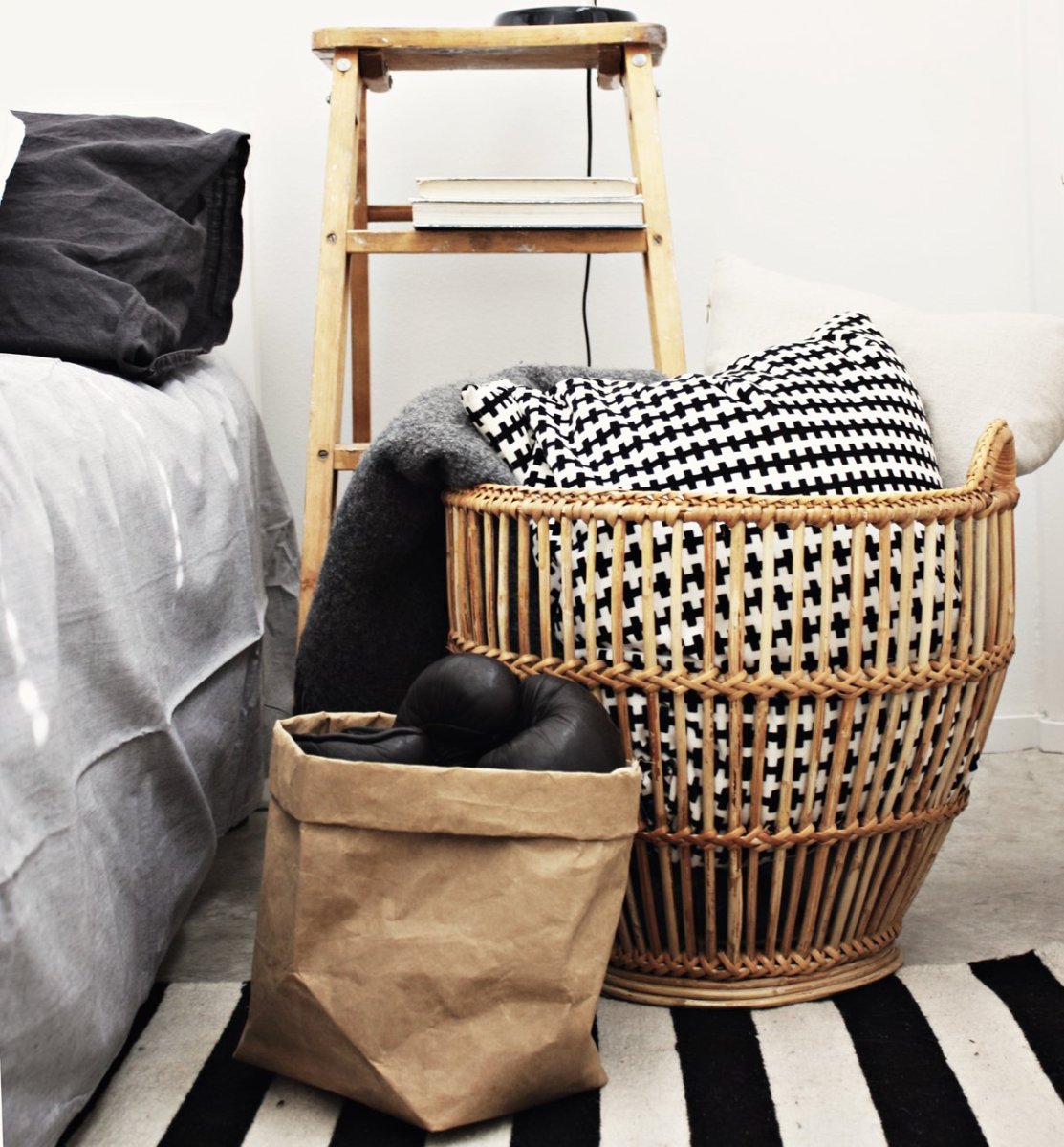 Плетеная корзина в современном интерьере
