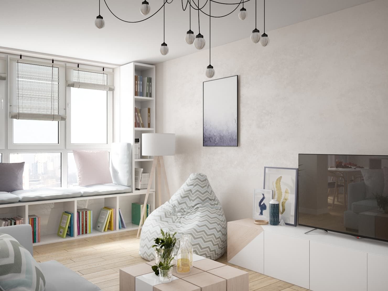 Гостиная в скандинавском стиле с рабочей зоной