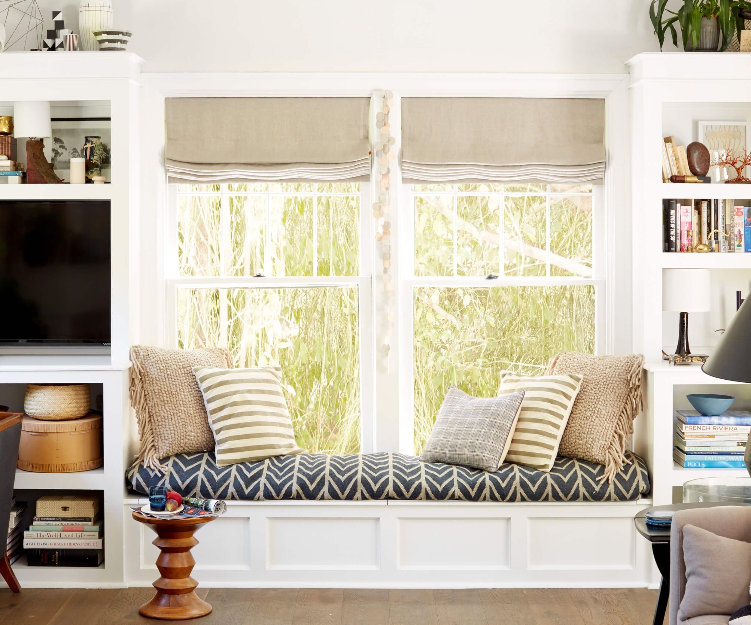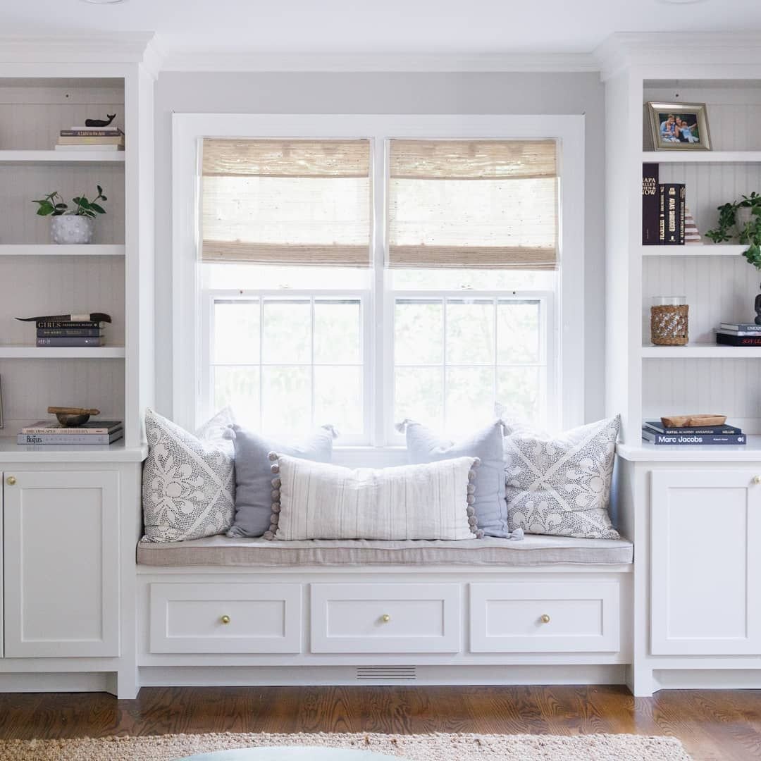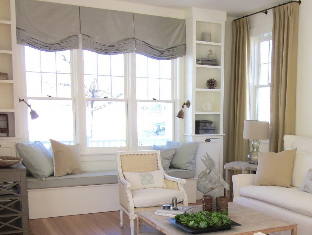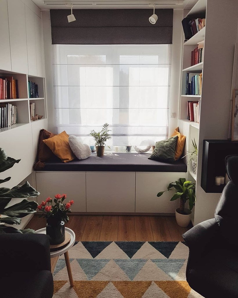 Окно с сидушкой в гостиной