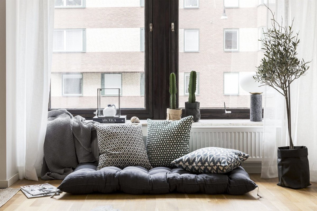 Подоконник с подушками в интерьере