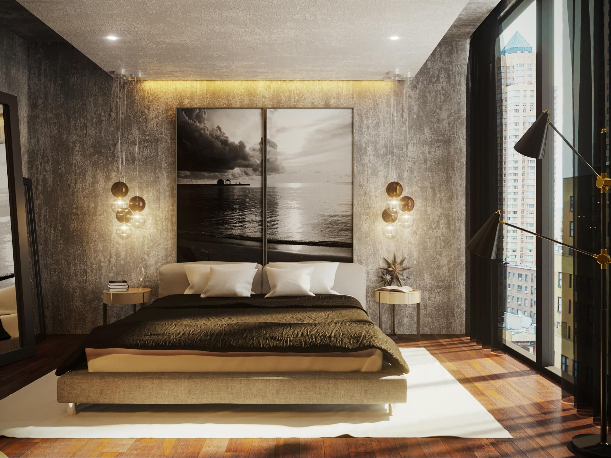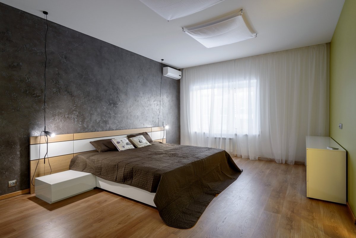 Штукатурка в интерьере спальни