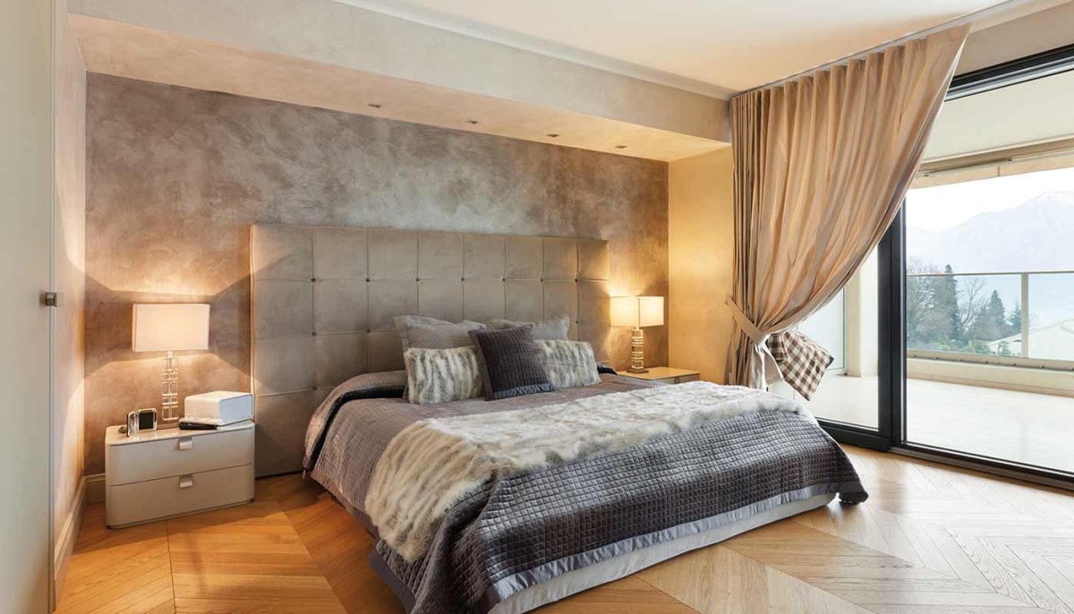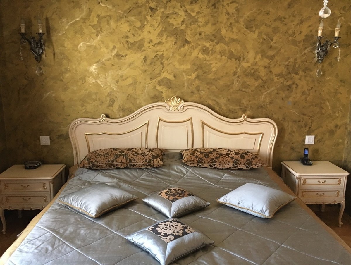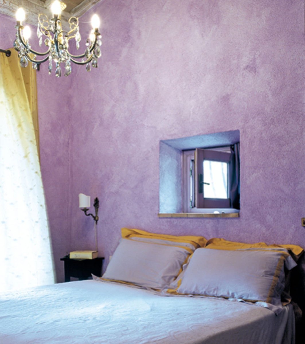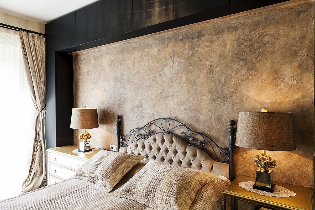 Венецианская штукатурка в интерьере спальни