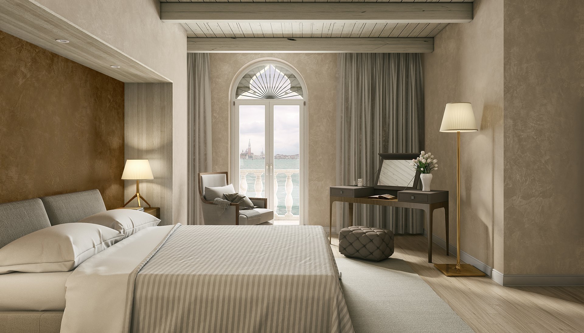 Венецианский стиль в интерьере спальни