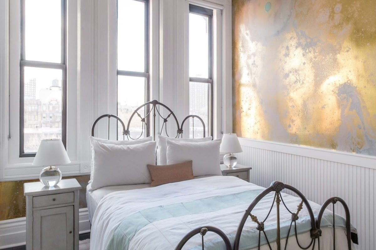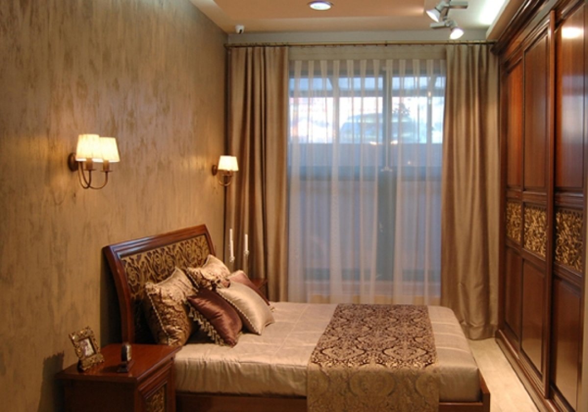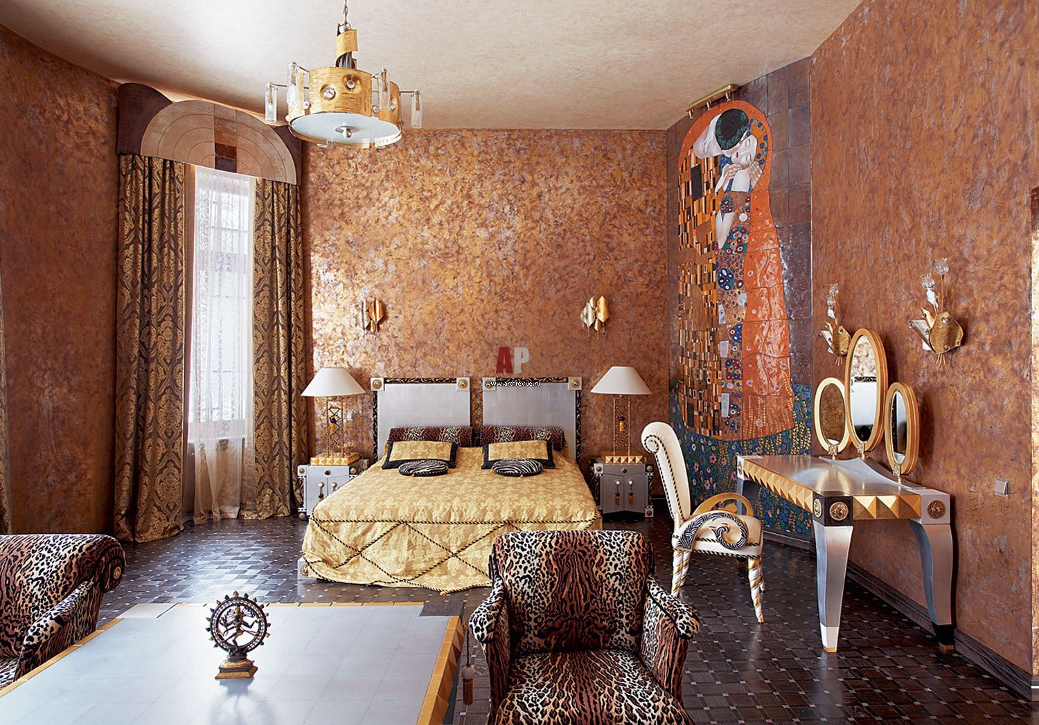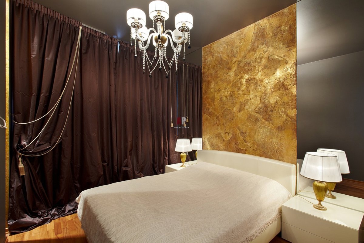 Спальня с золотыми стенами