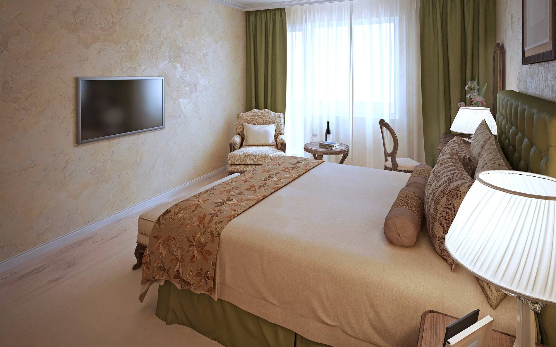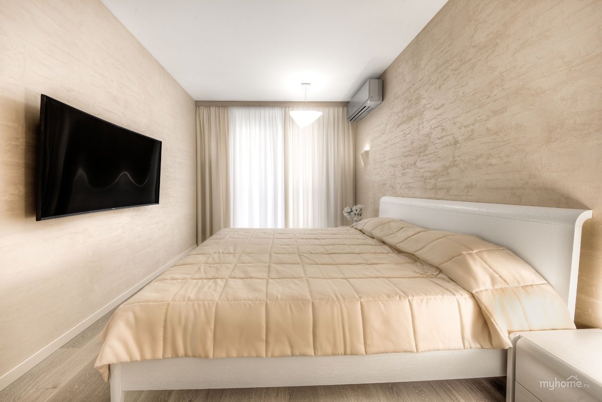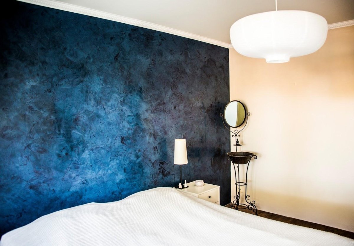 Спальня с декоративной штукатуркой на стенах