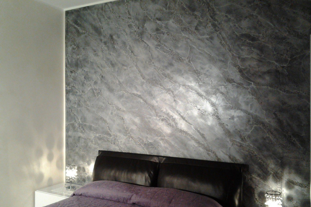Венецианская штукатурка под мрамор в спальне