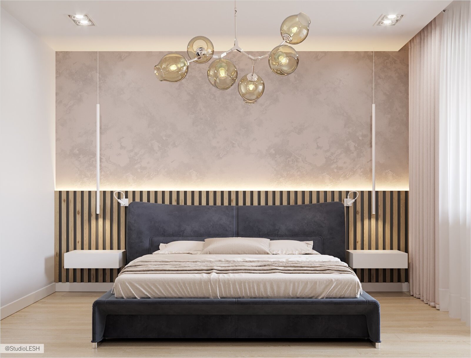 Штукатурка микроцемент спальня
