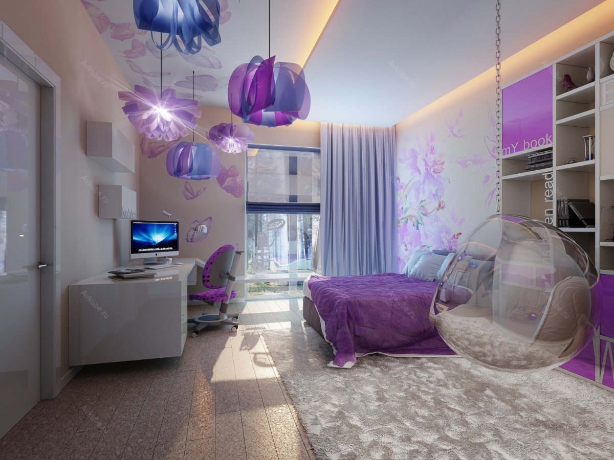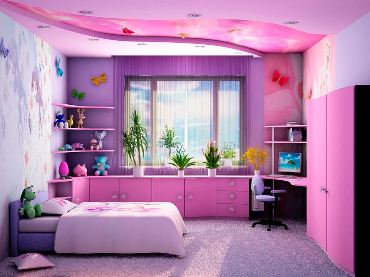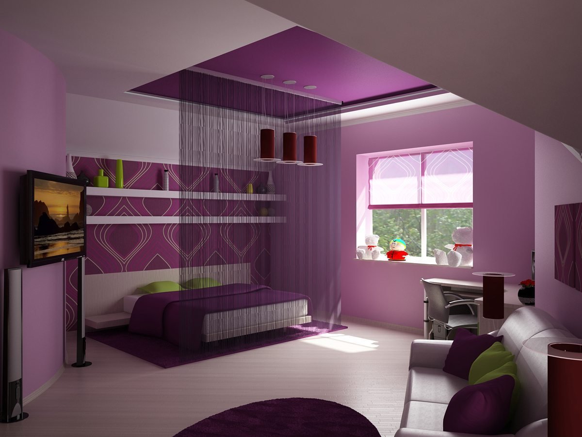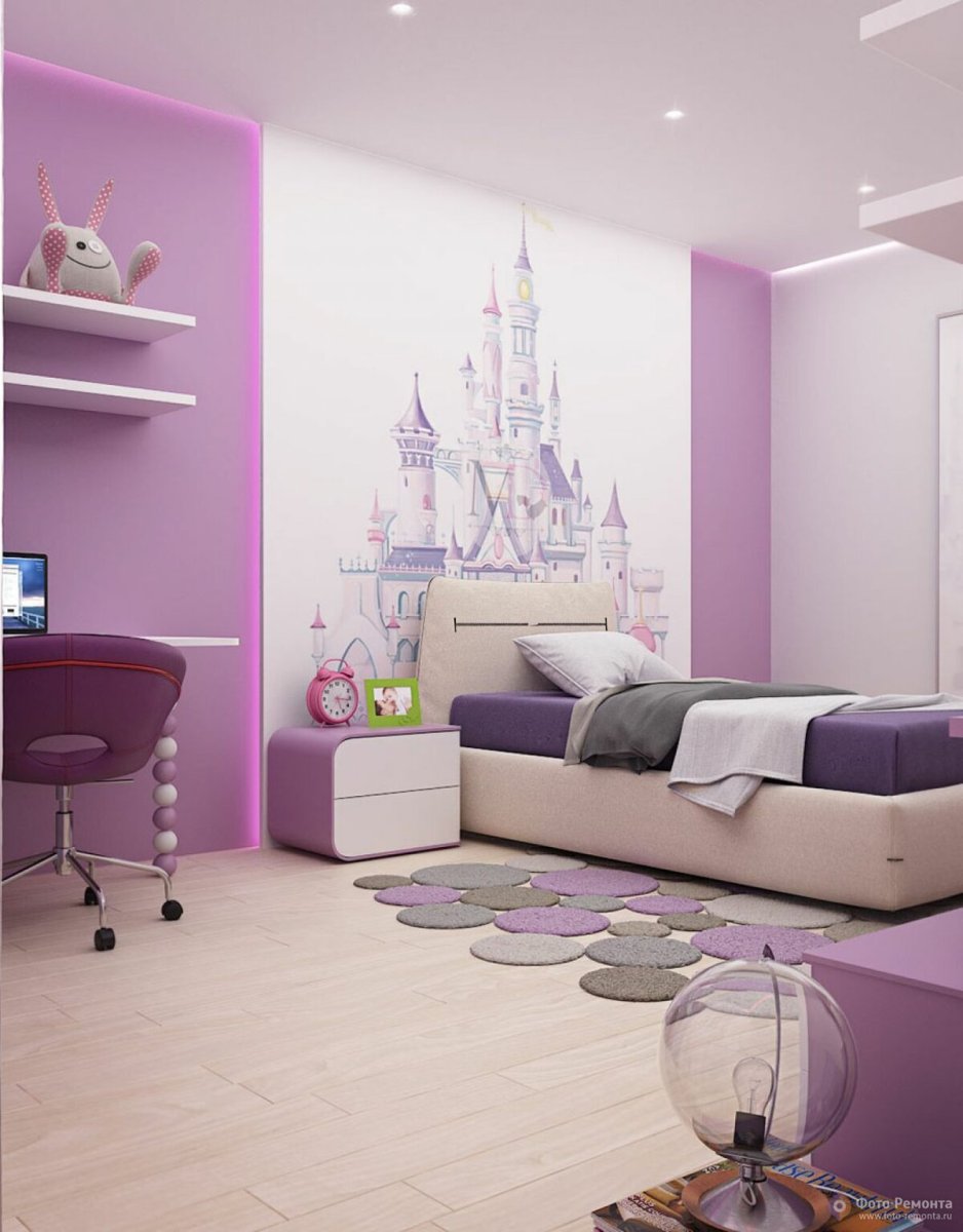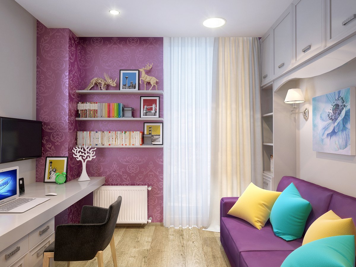 Комната для девочки подростка розово фиолетово зеленого цвета