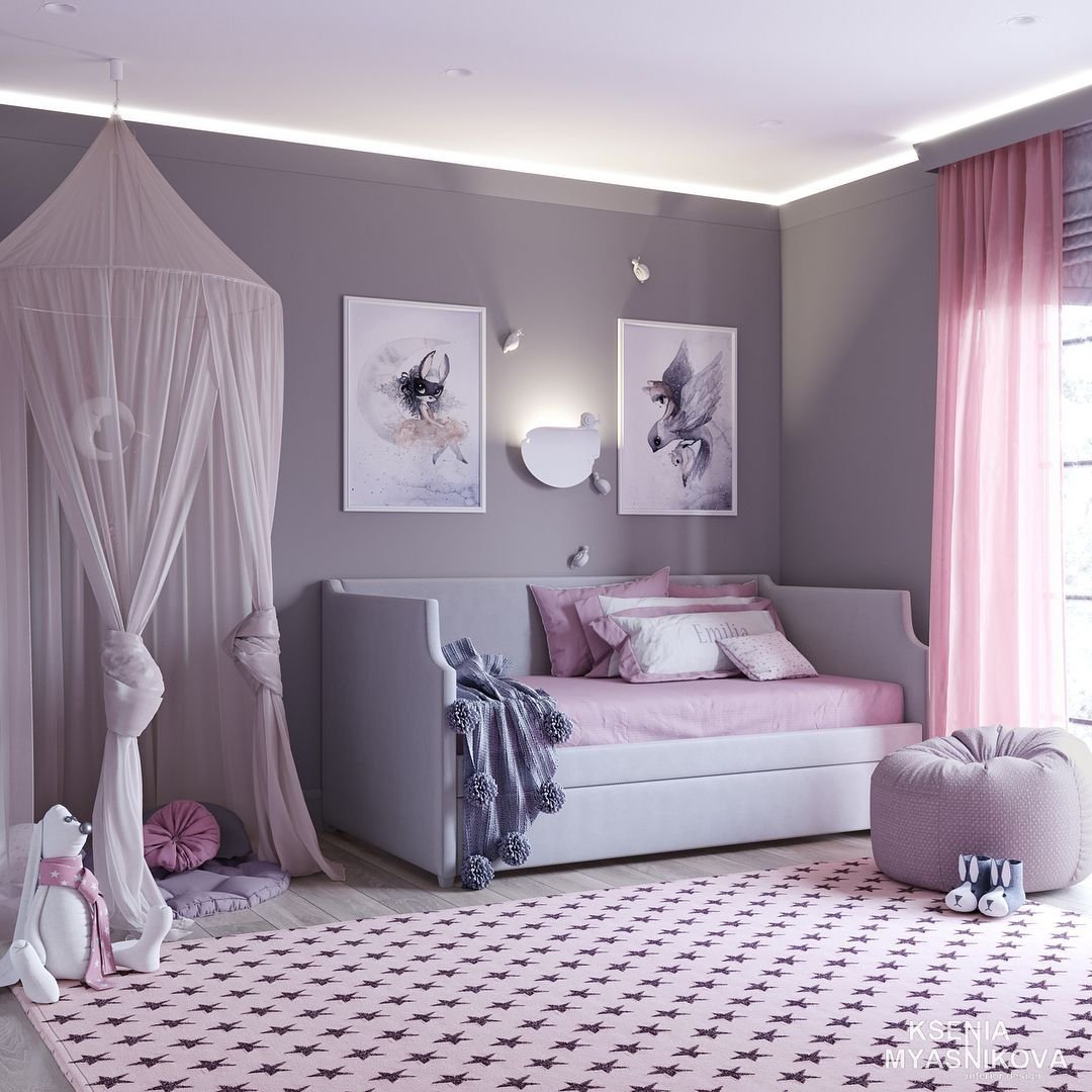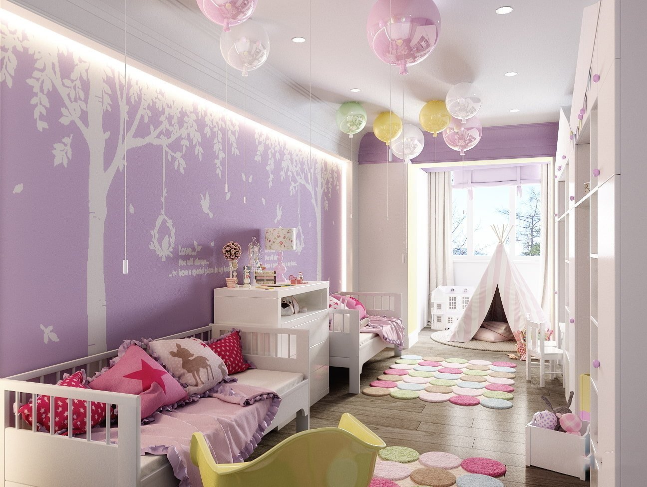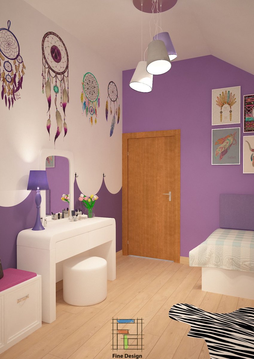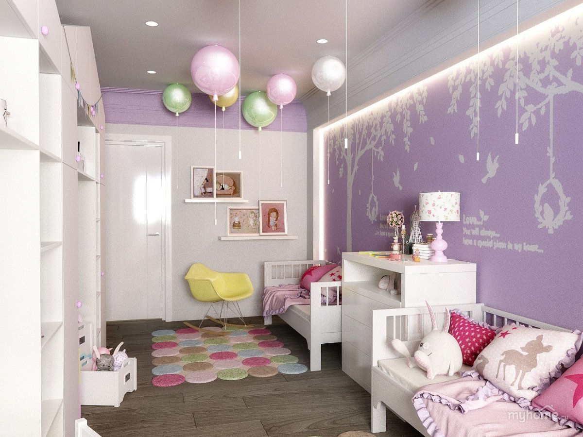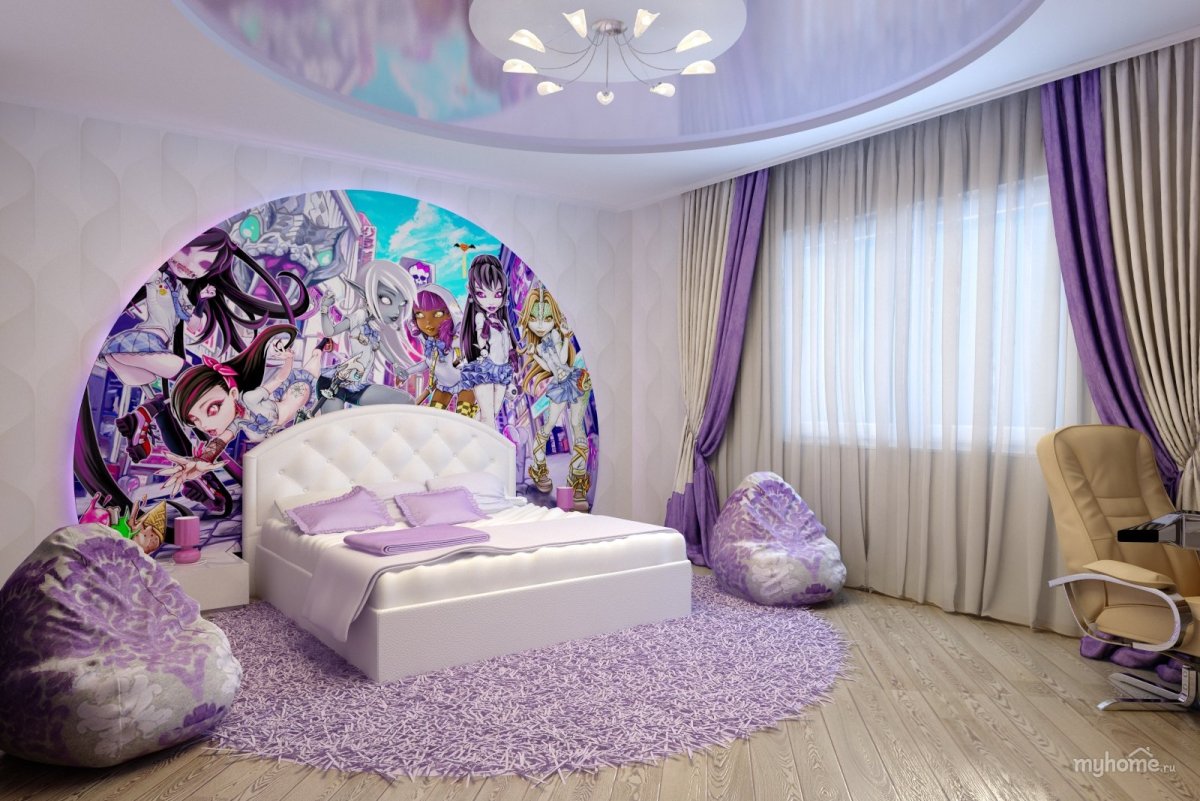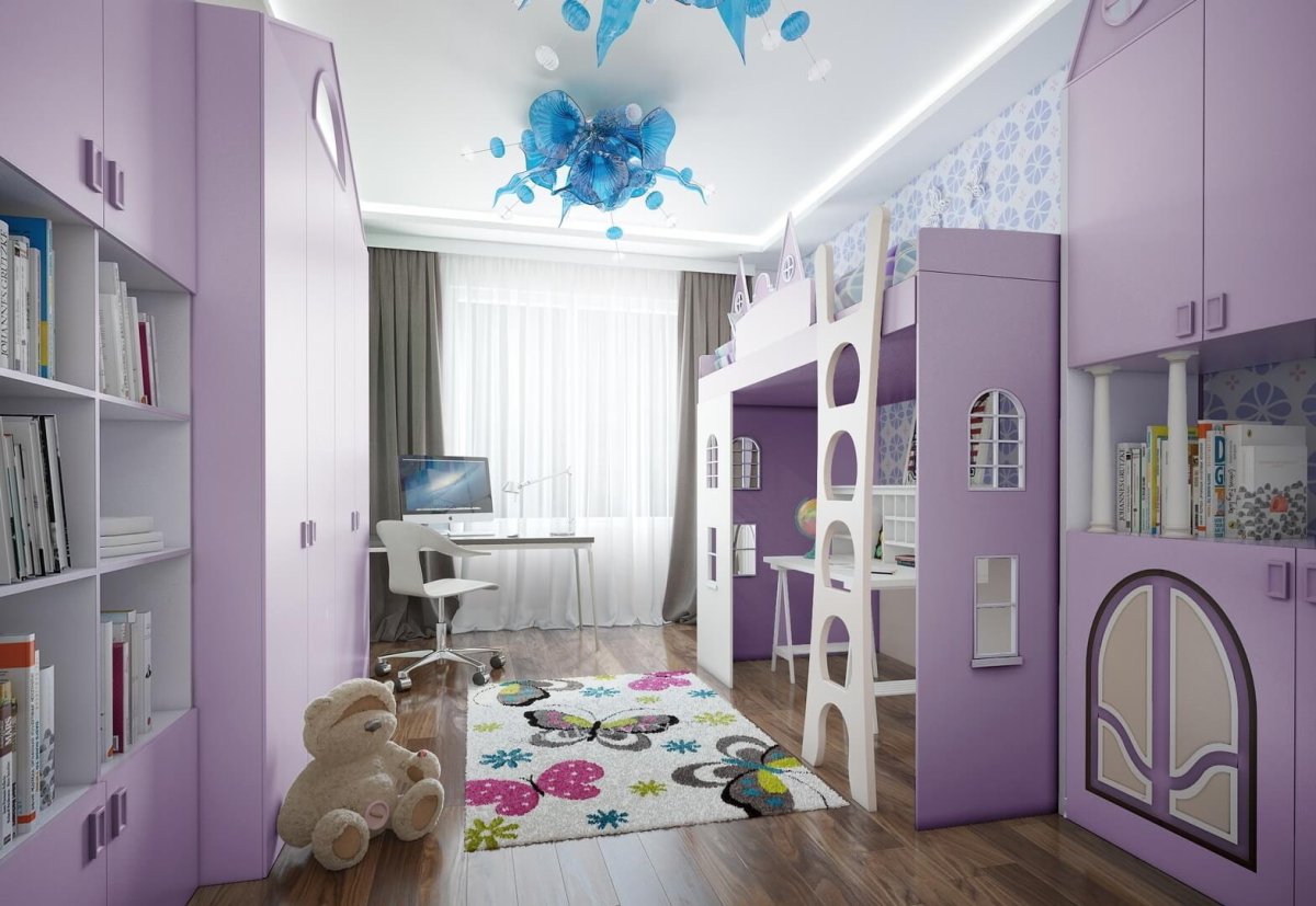 Комната для девочки подростка розово фиолетово зеленого цвета