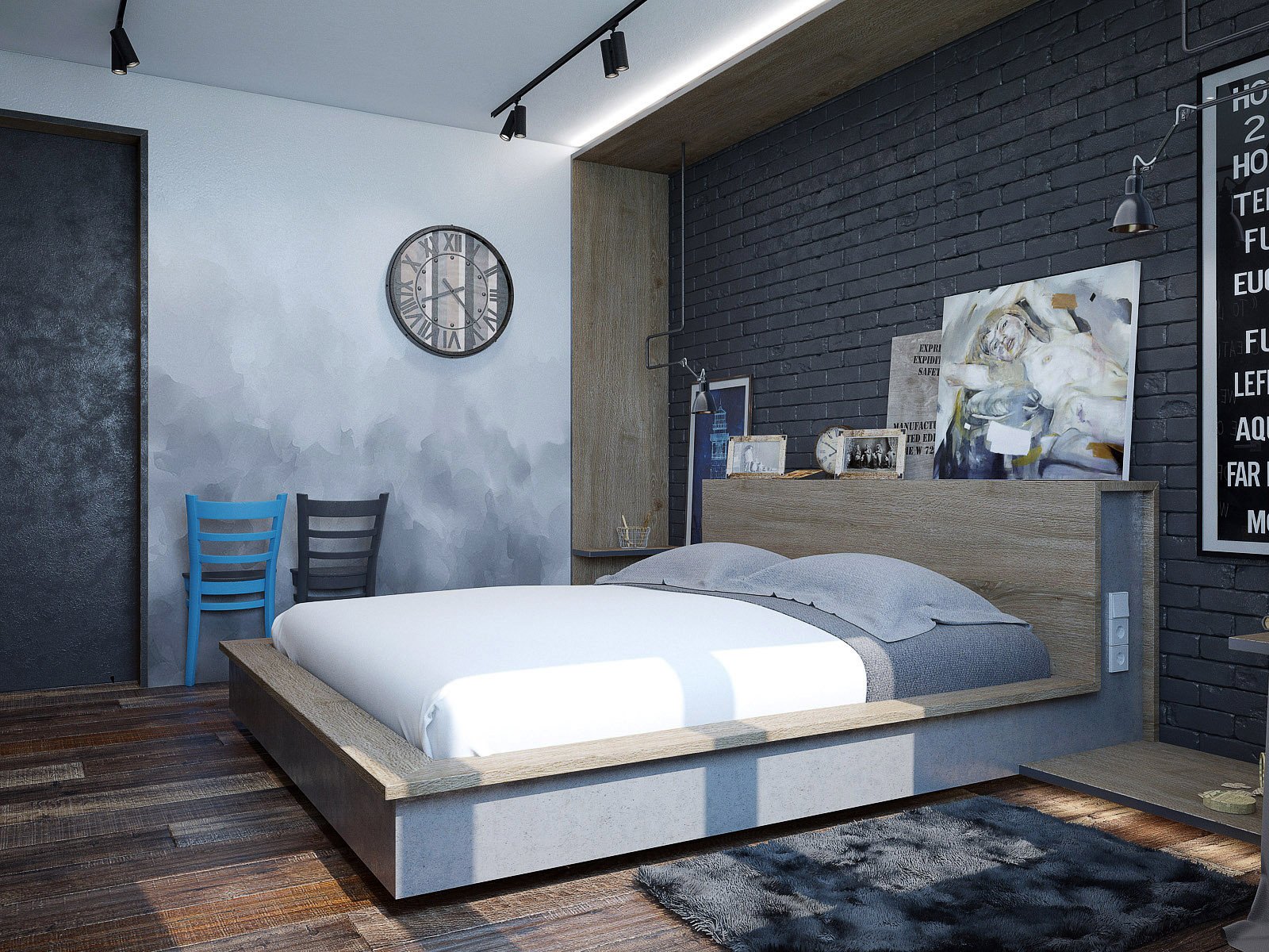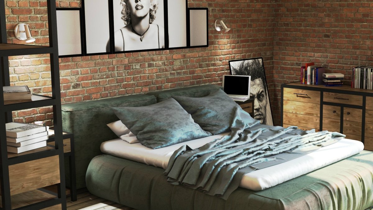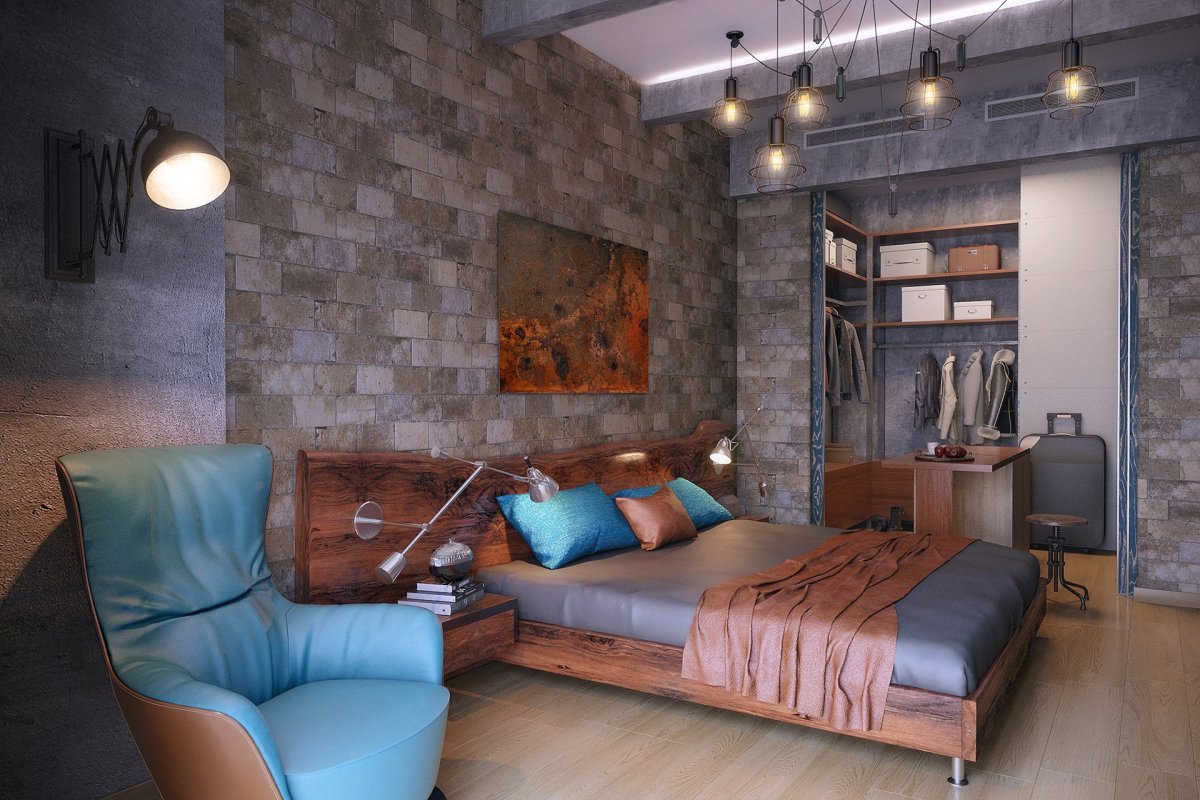 Спальня в стиле лофт индустриал