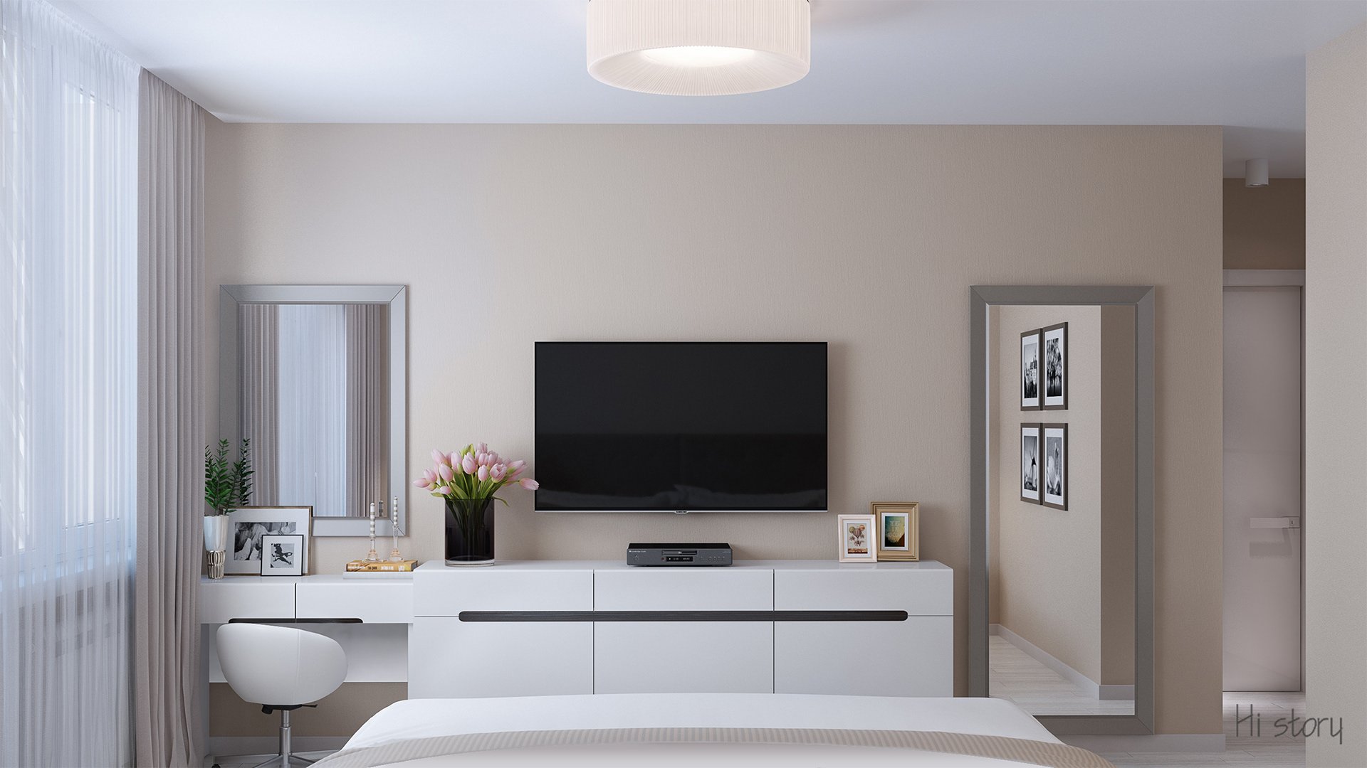 Спальня с телевизором и туалетным столиком