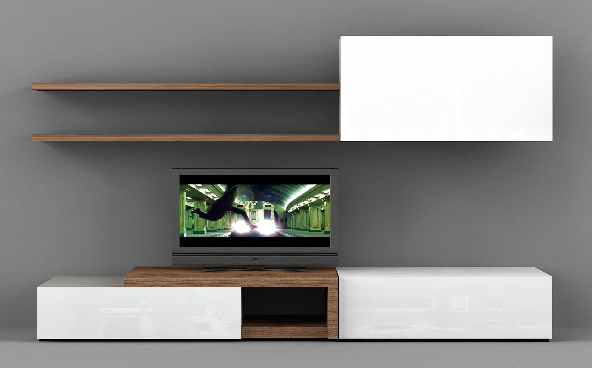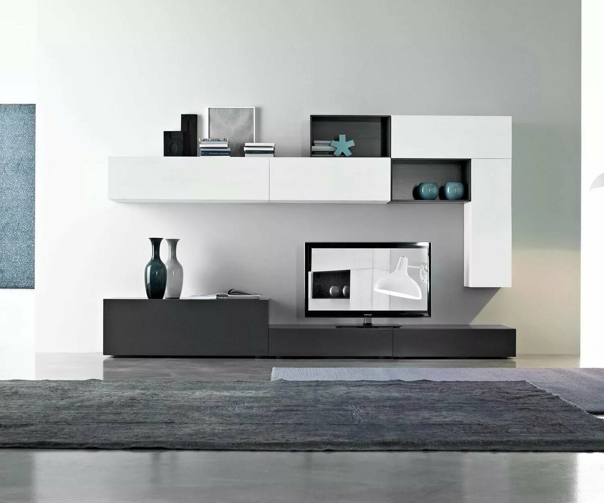 Стенка под телевизор в современном стиле с полками