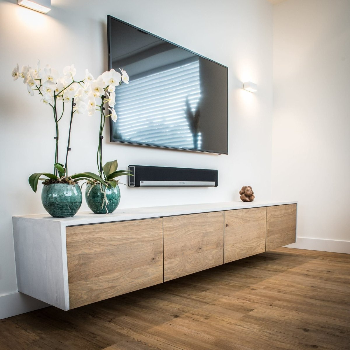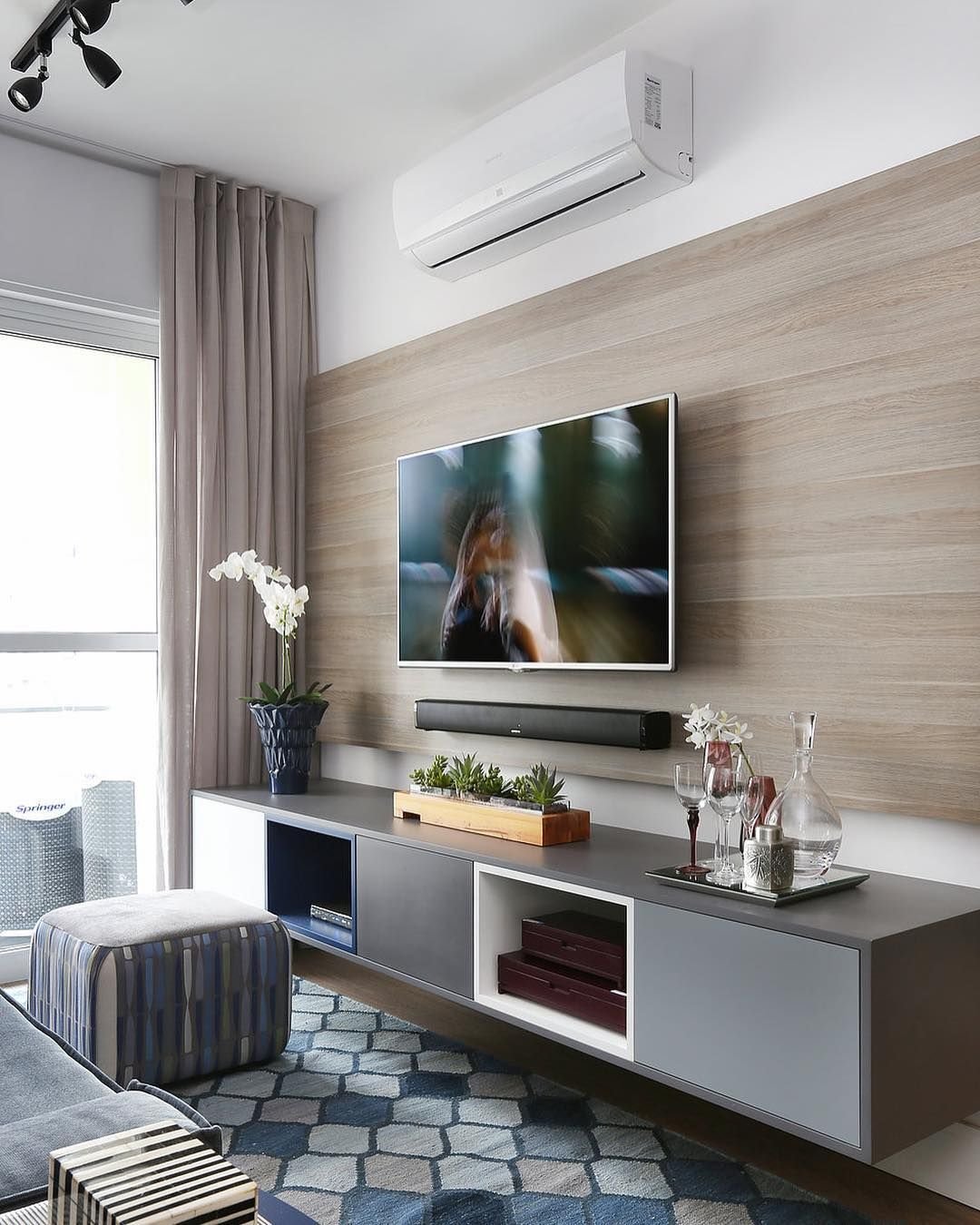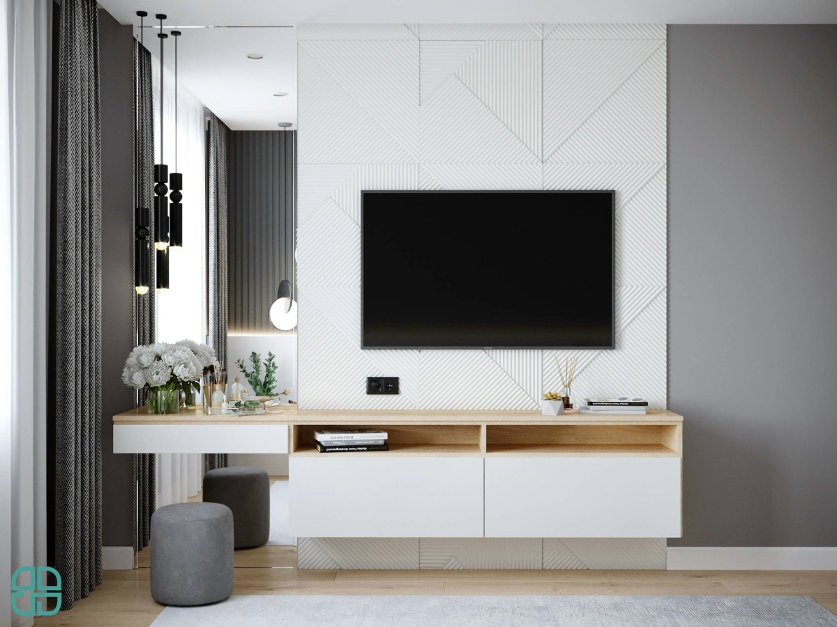Гостиная с подвесной тумбой под ТВ