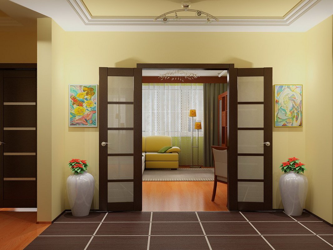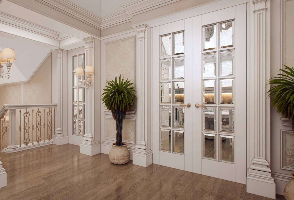 Стеклянная раздвижная перегородка в гостиной Неоклассика