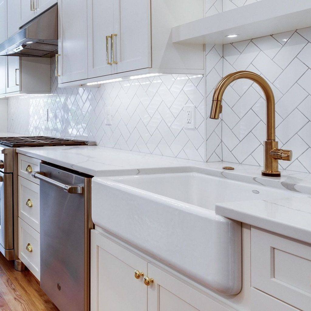 Белая плитка на фартук для кухни