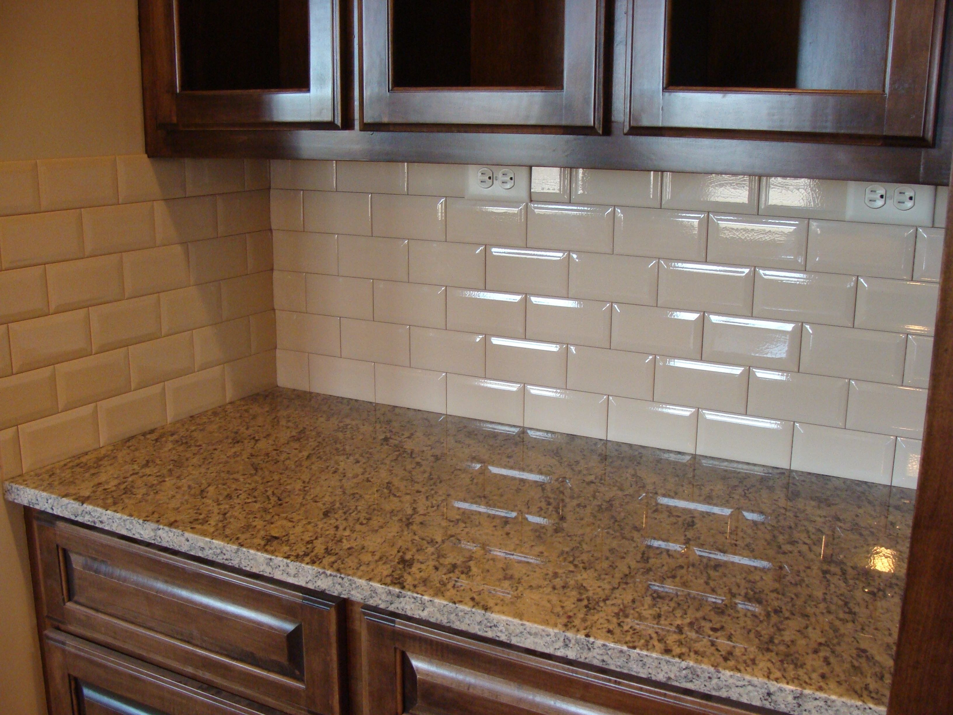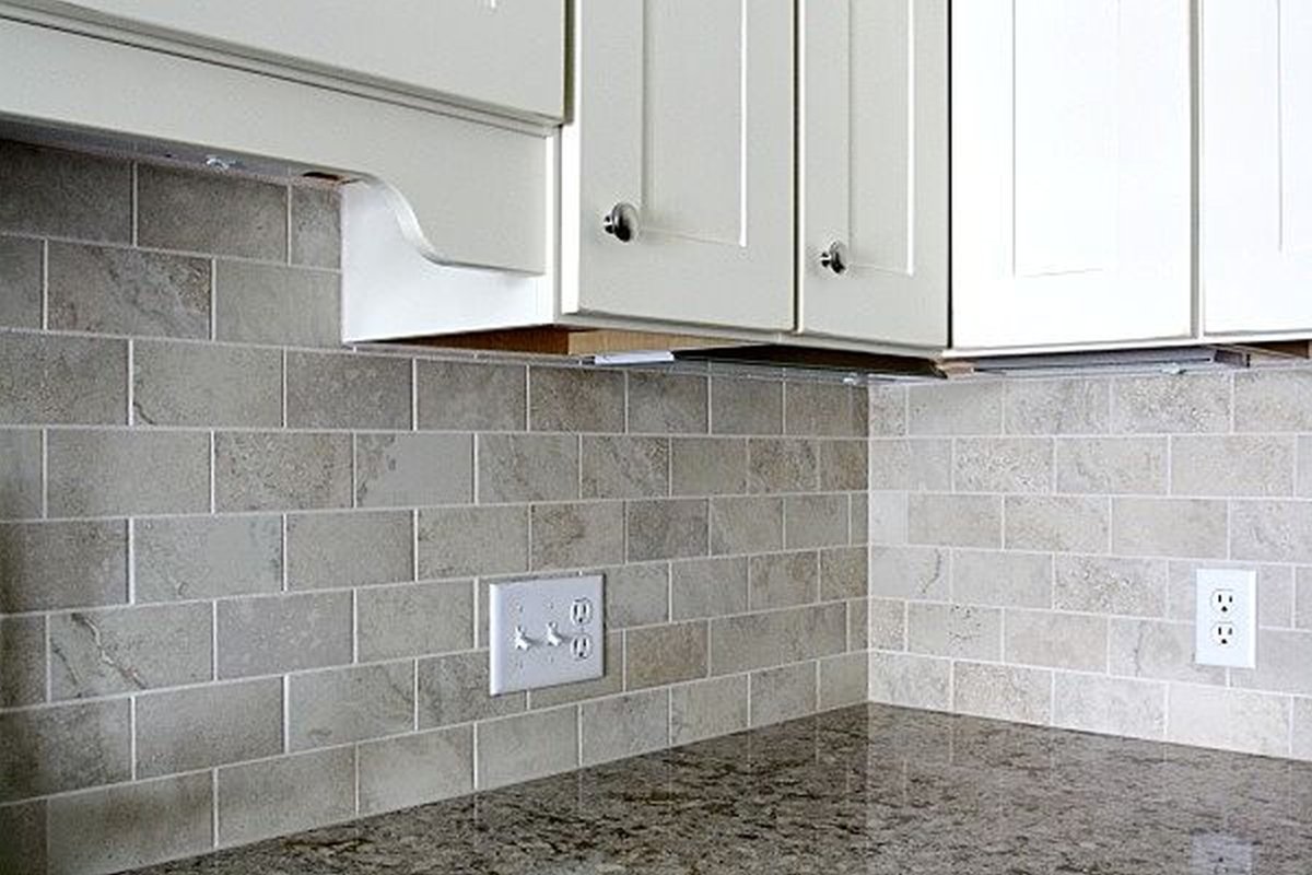 Бежевая плитка на кухне фартук
