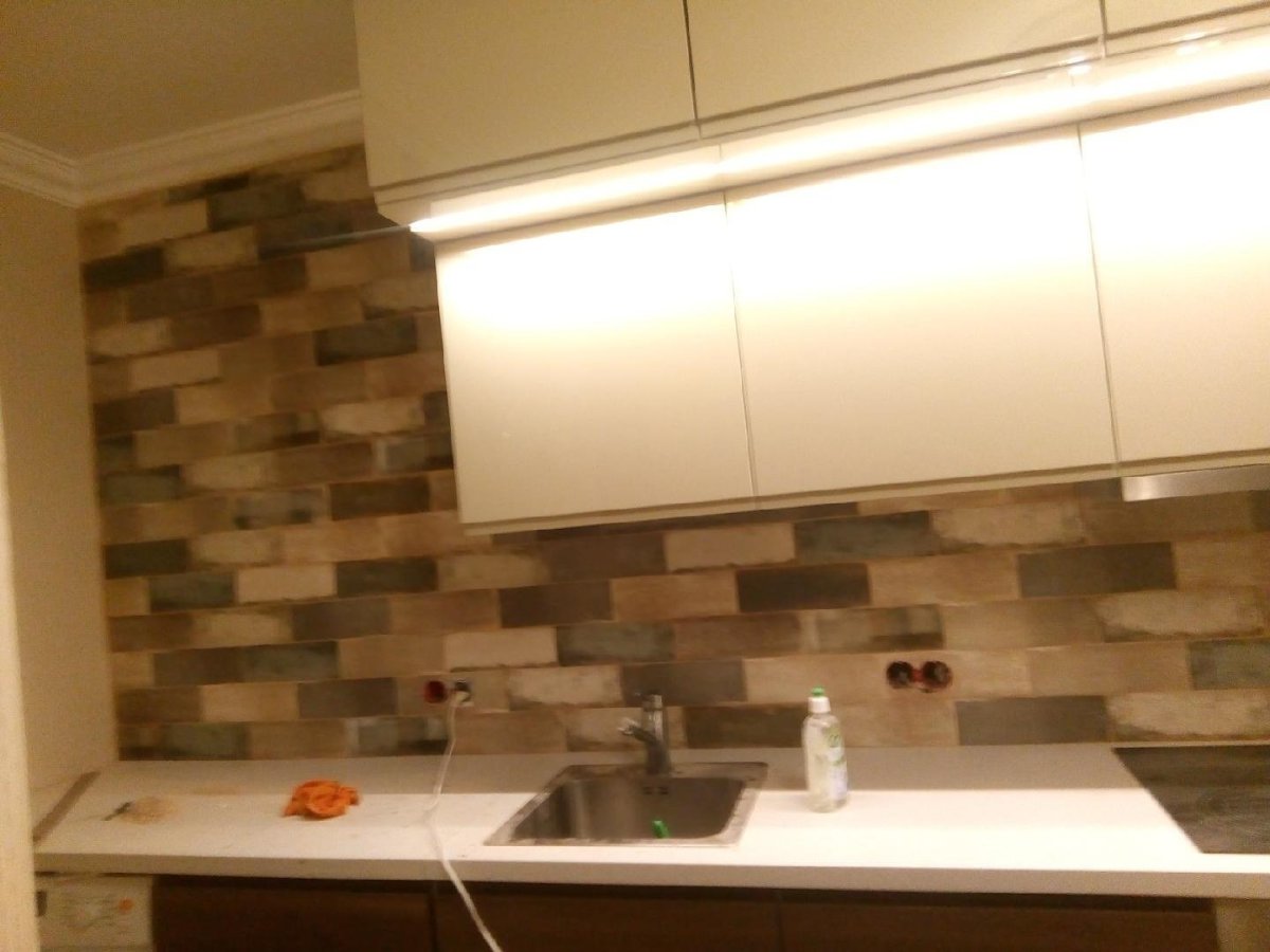 Плинтус для плитки на кухне на фартуке