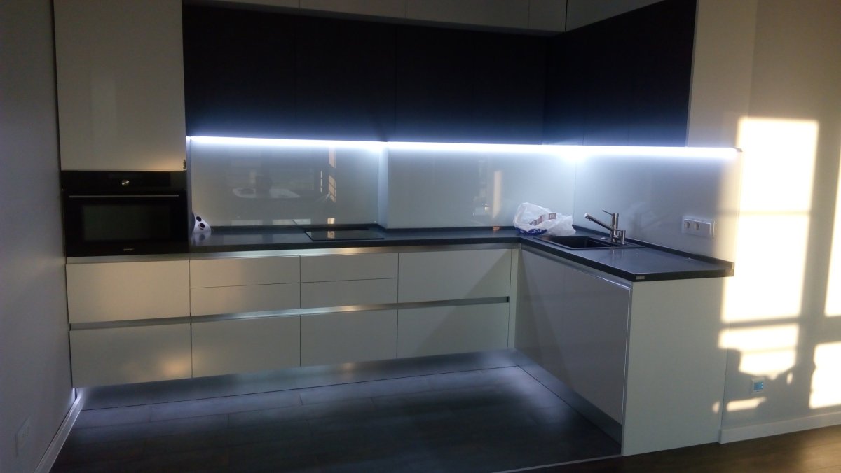 Кухонный фартук из стекла с подсветкой