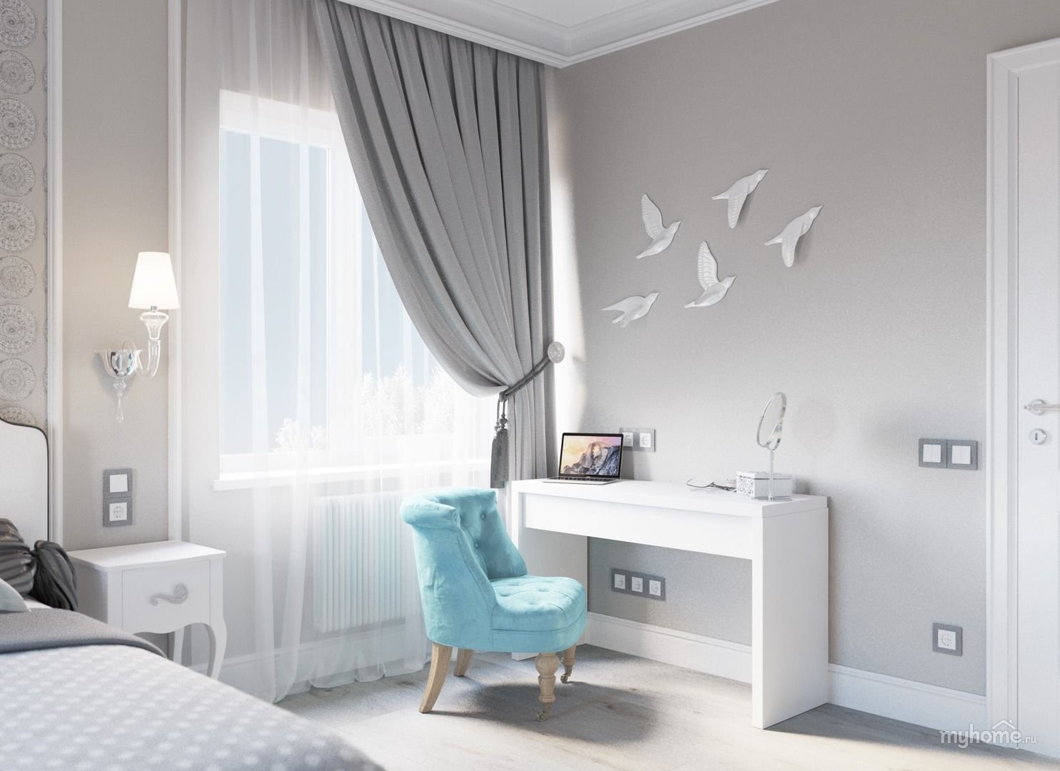 Комната для девочки подростка в светло серых тонах