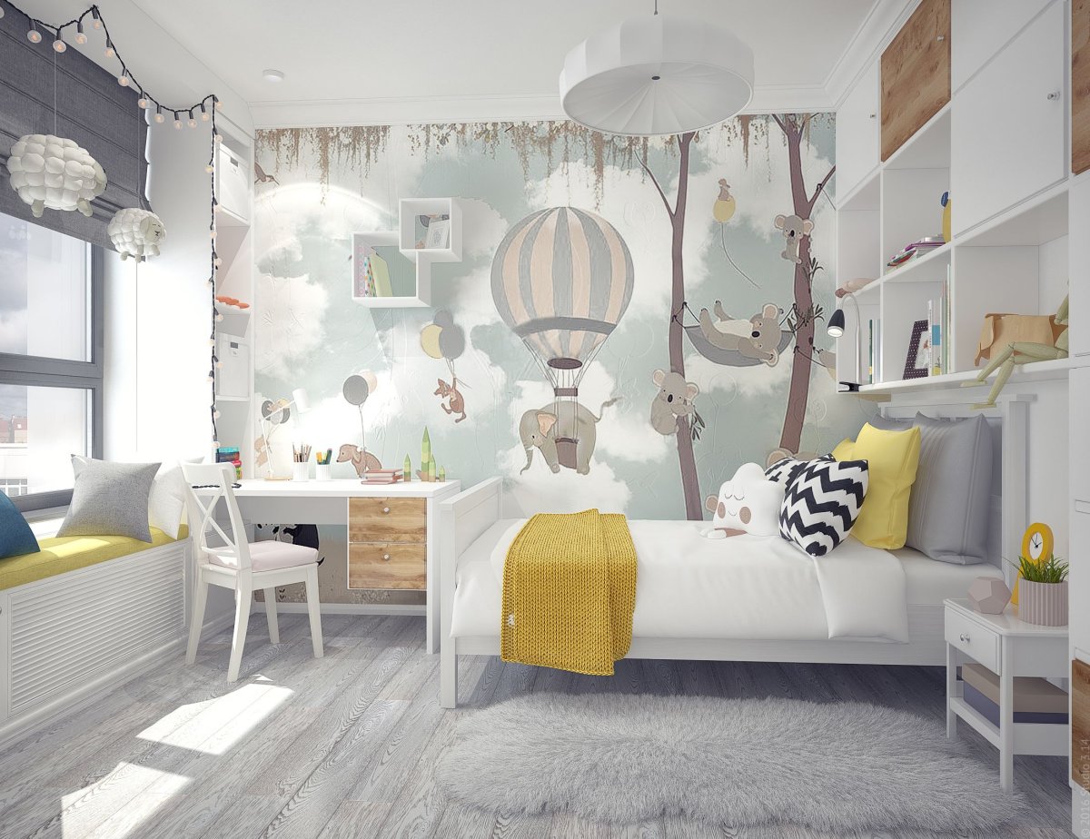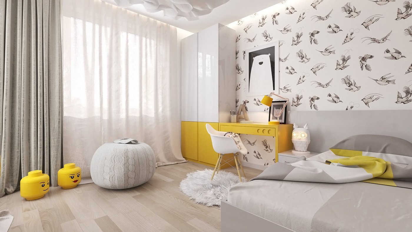 Детская комната в желто серых тонах