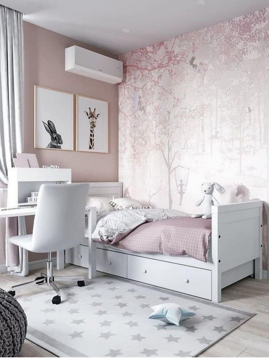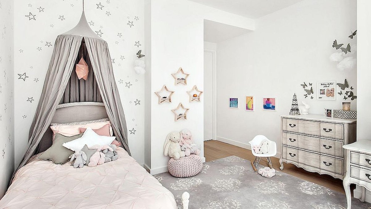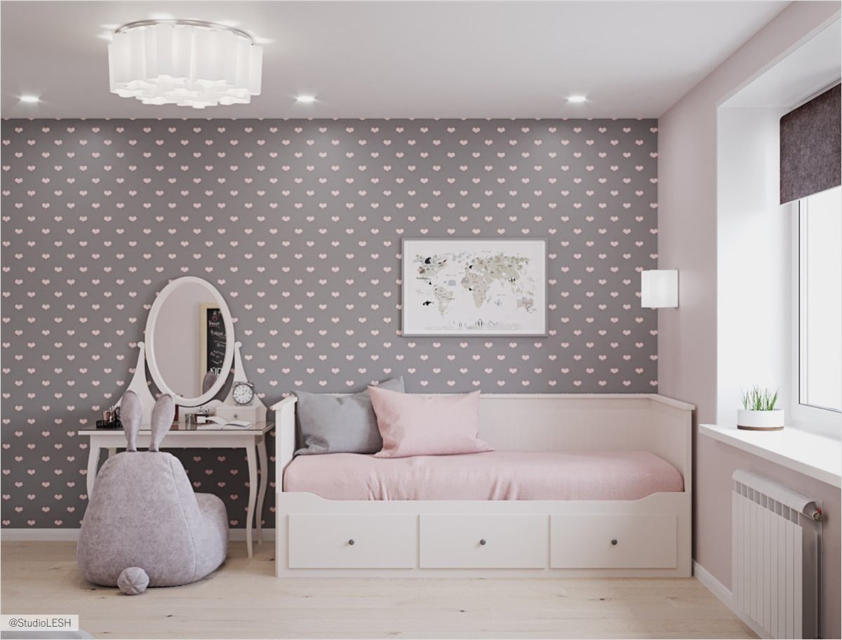 Комната для девочки в серо-розовых тонах