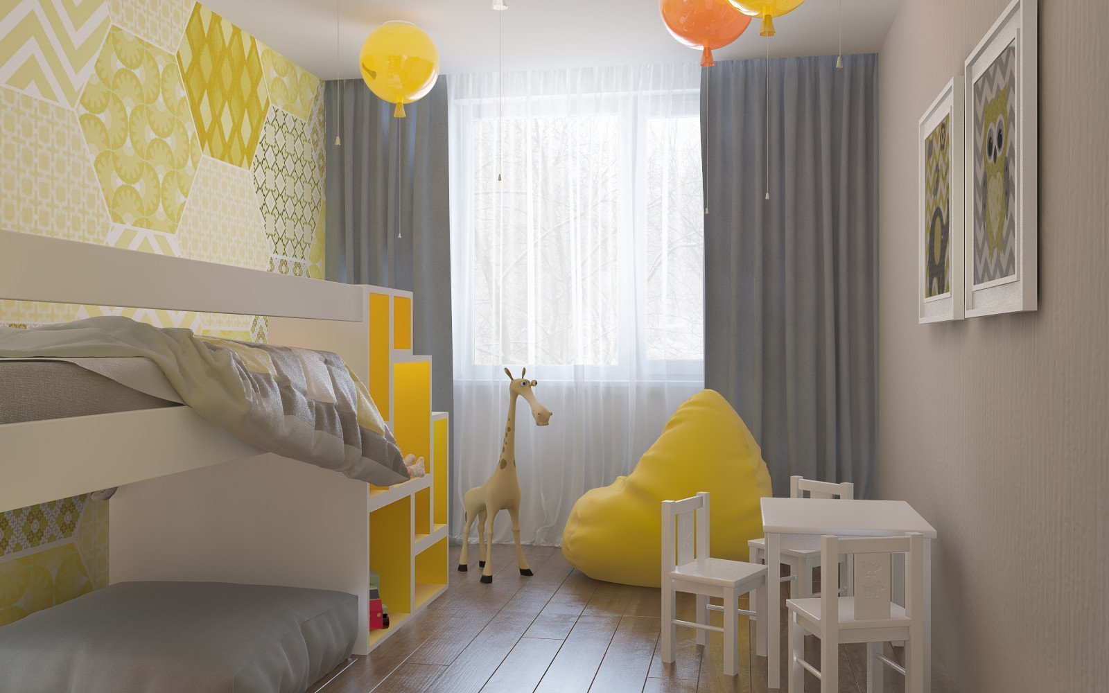 Детская в желто серых тонах