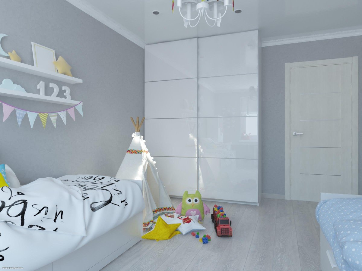 Детская комната в бело серых тонах