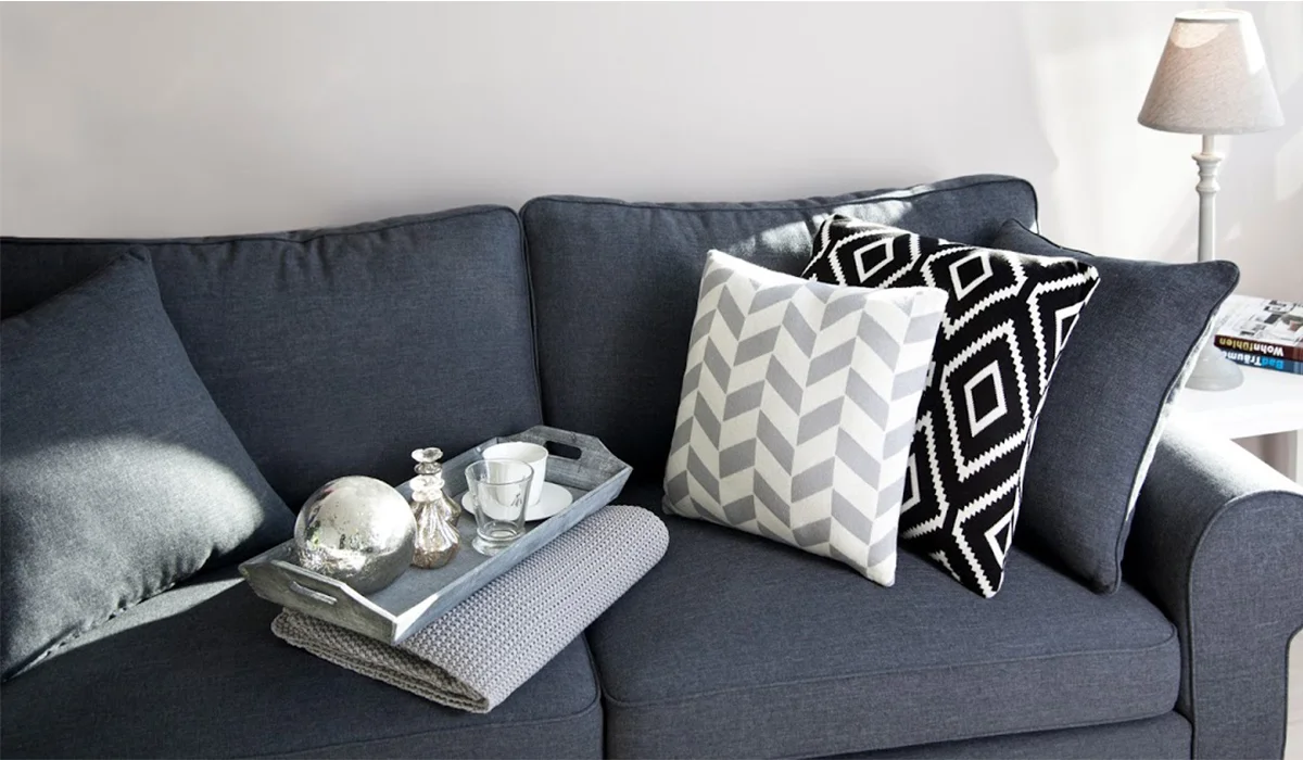 Серый диван с подушками