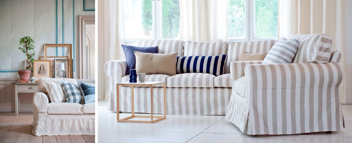Полосатый чехол на диван