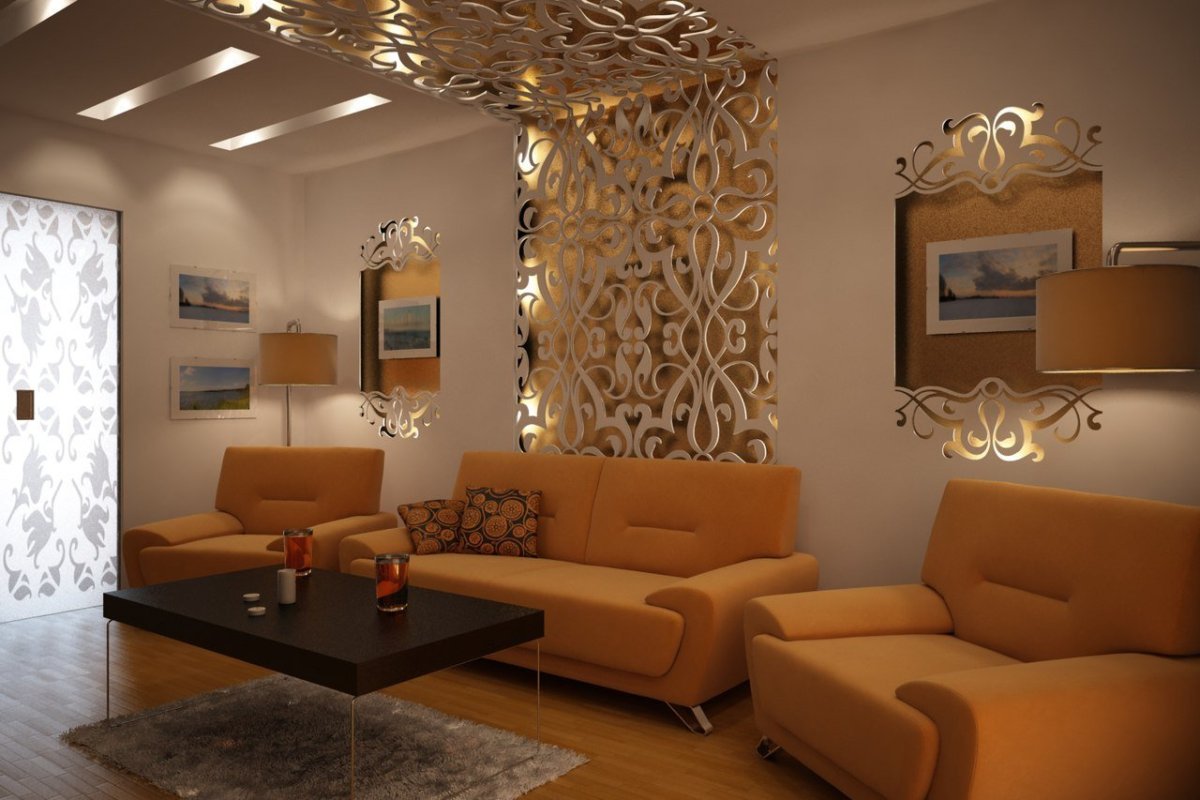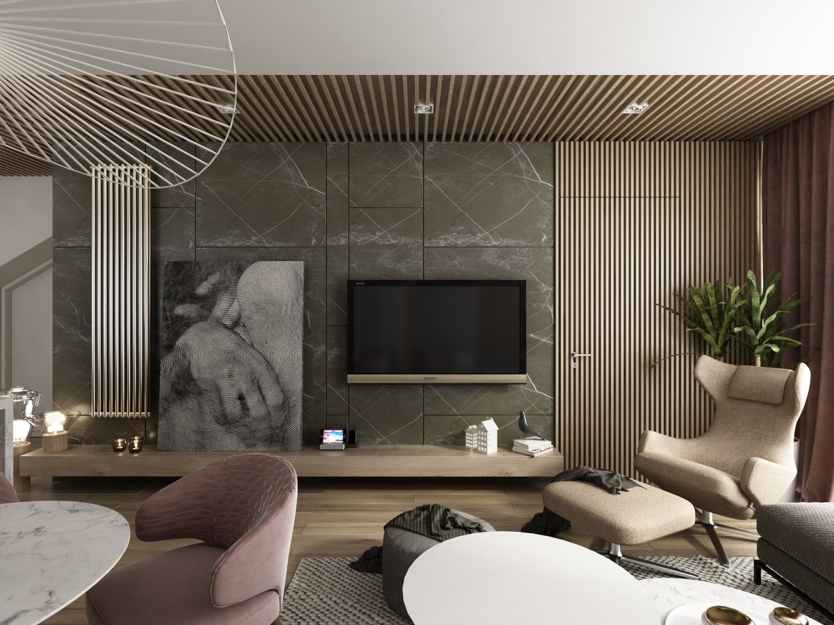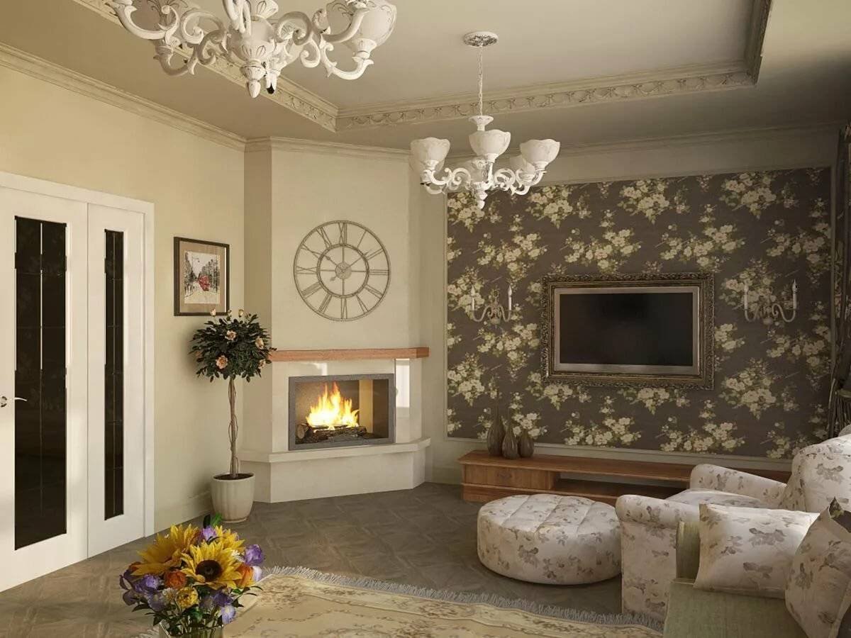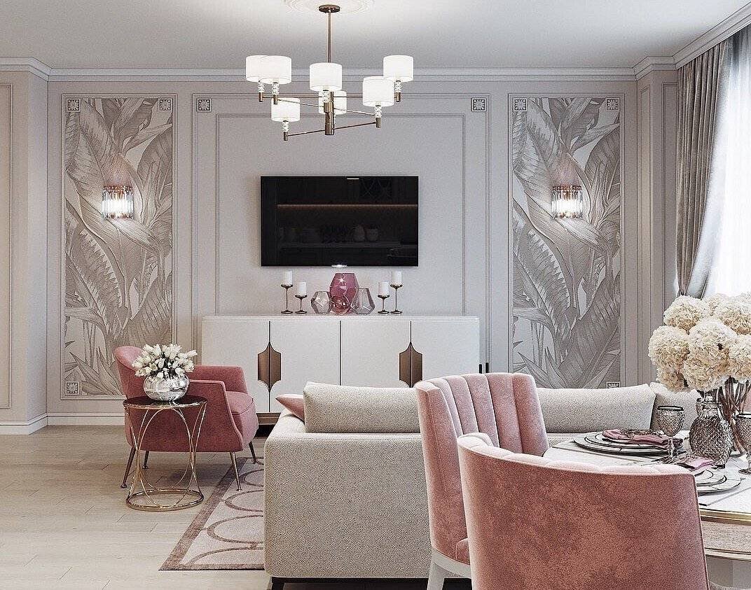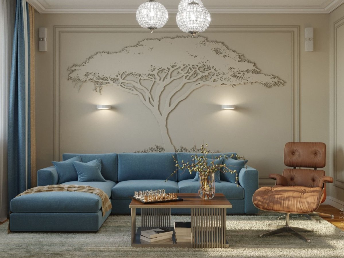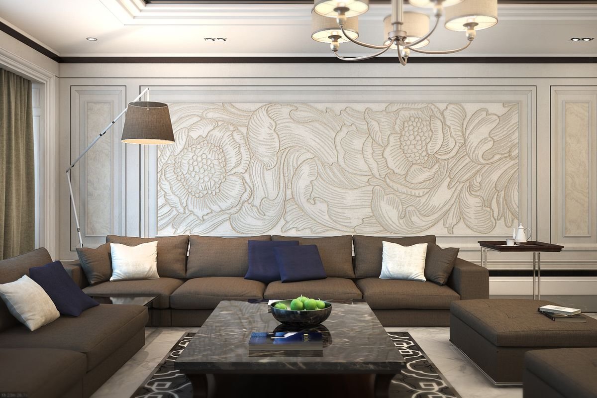 Линкруста в интерьере гостиной в стиле Неоклассика