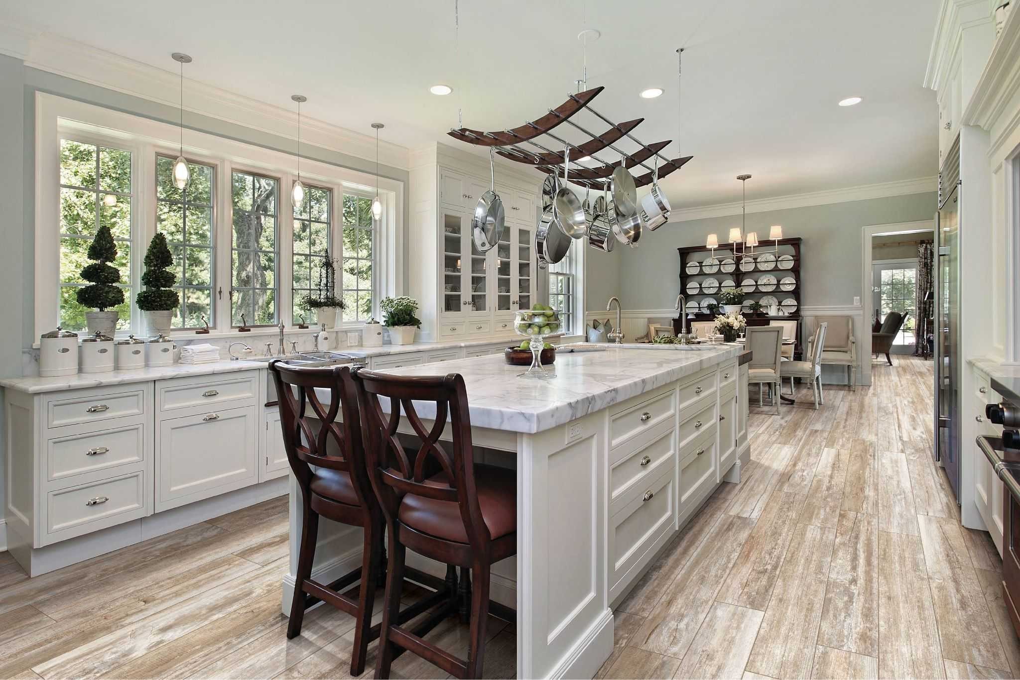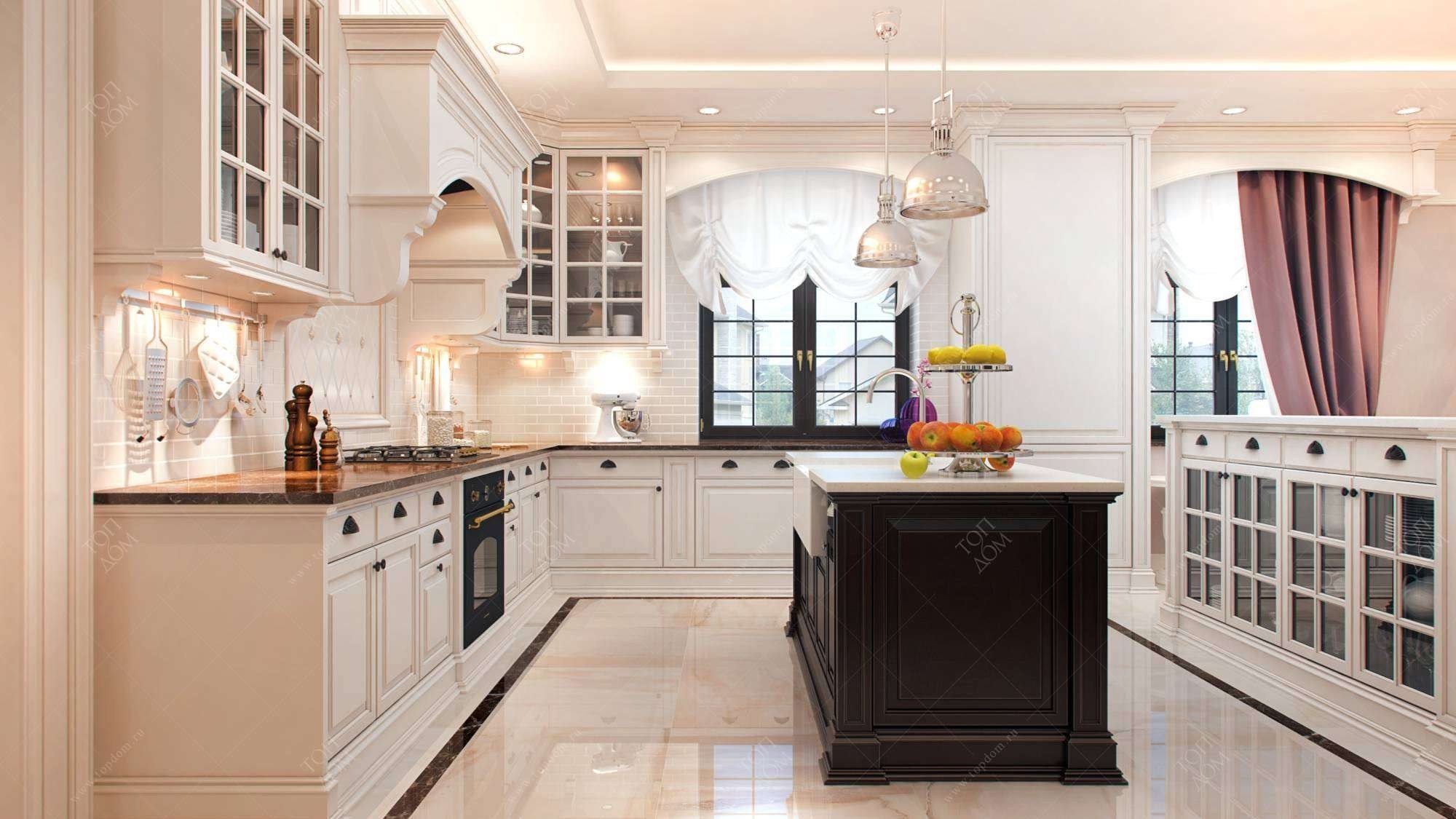 Кухня в классическом стиле с большими окнами