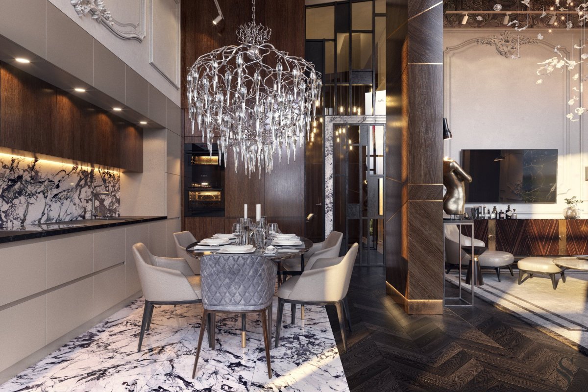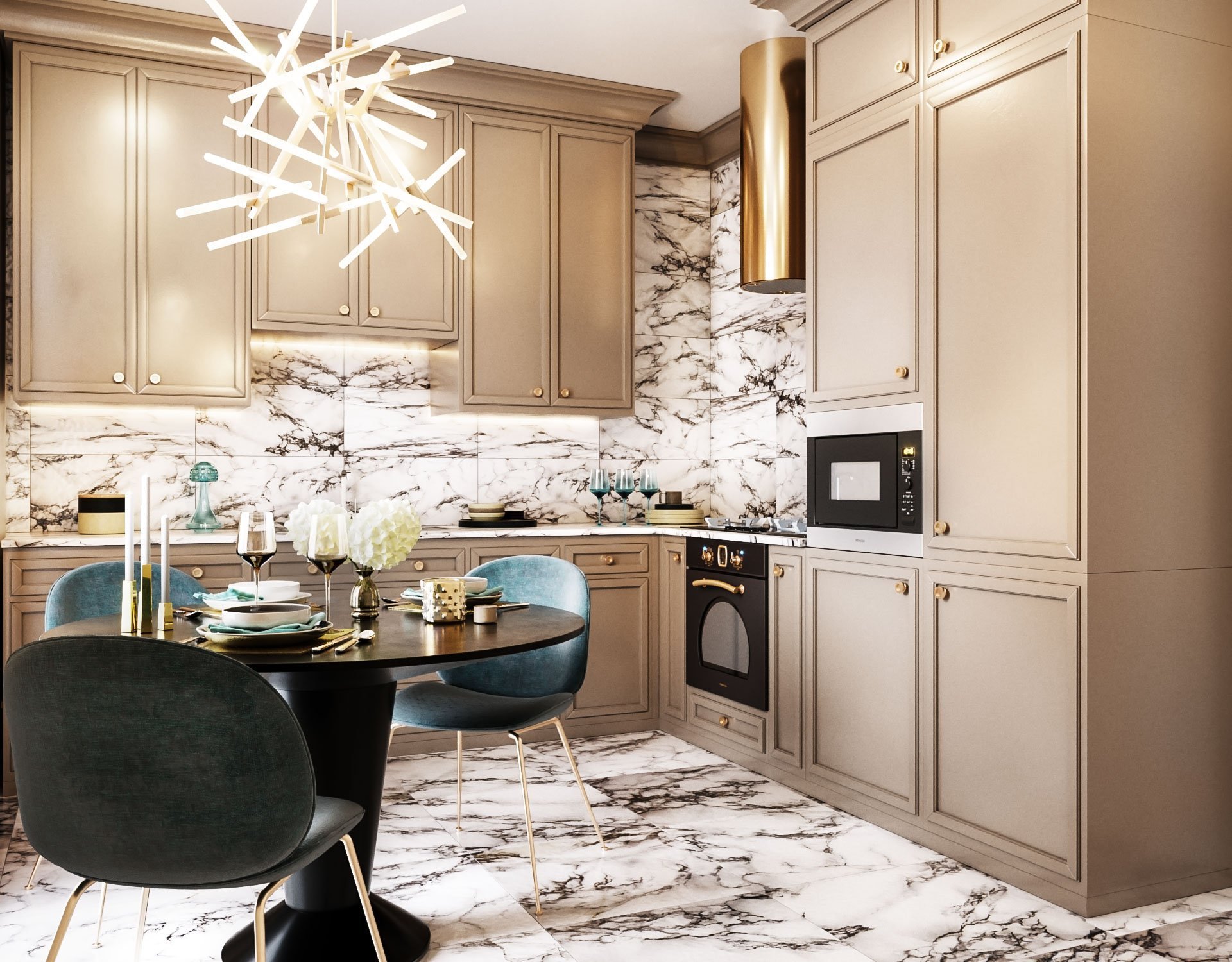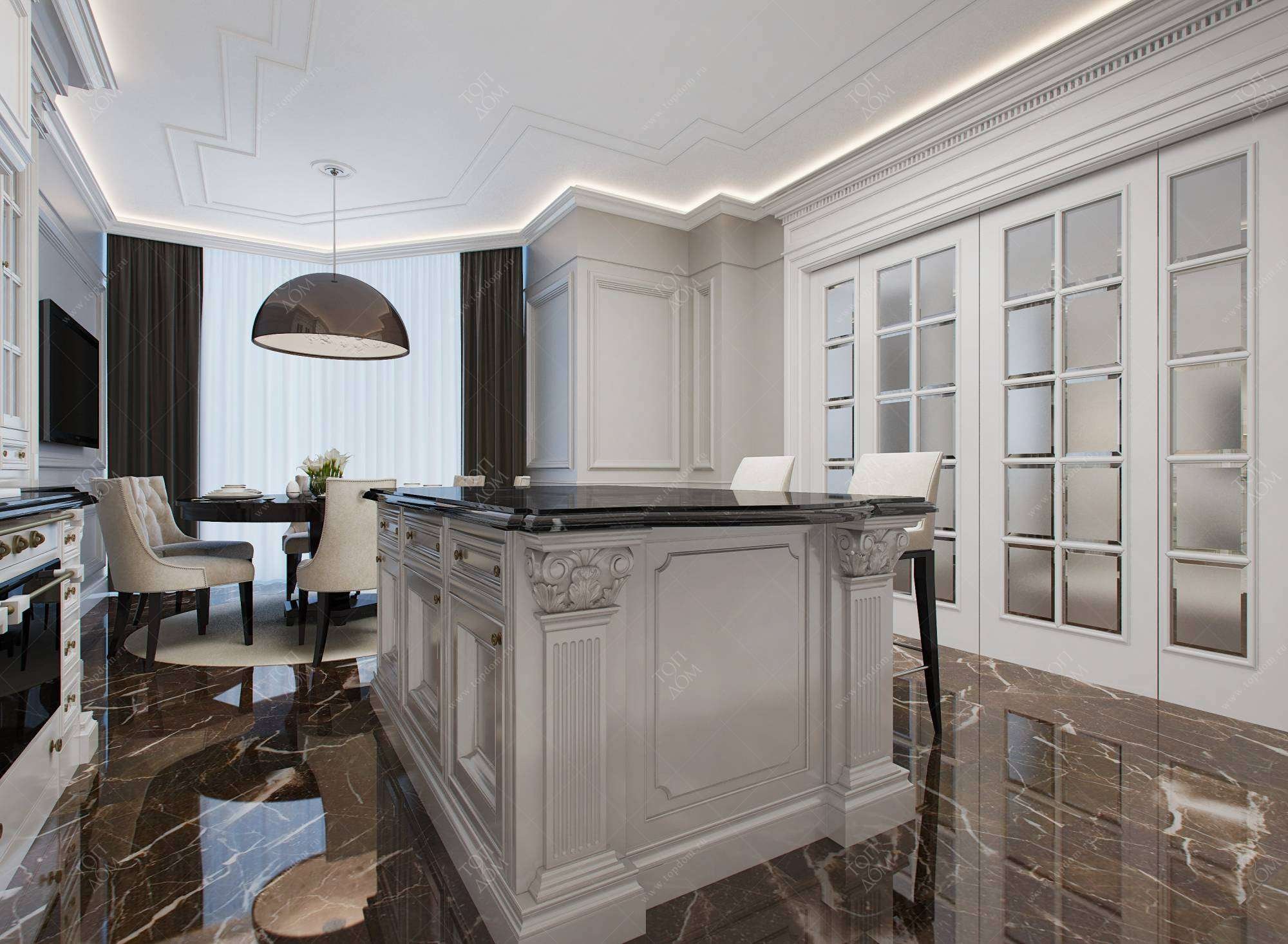 Классика и мрамор в интерьере кухни