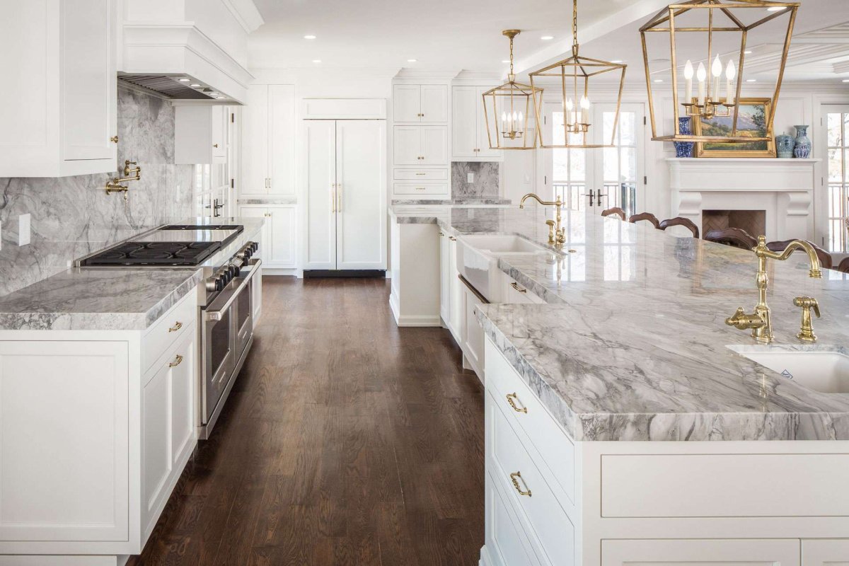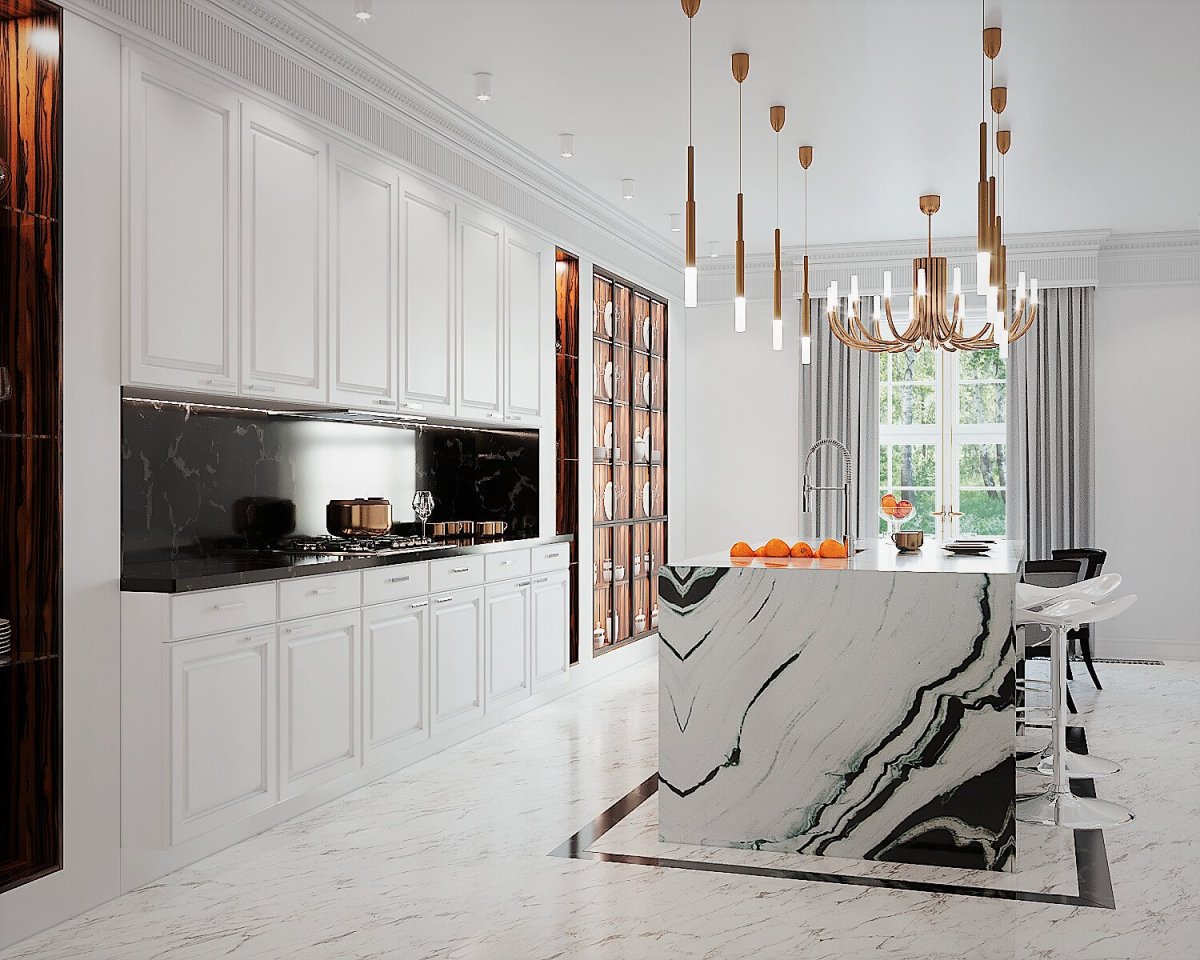 Классическая кухня с белым мрамором