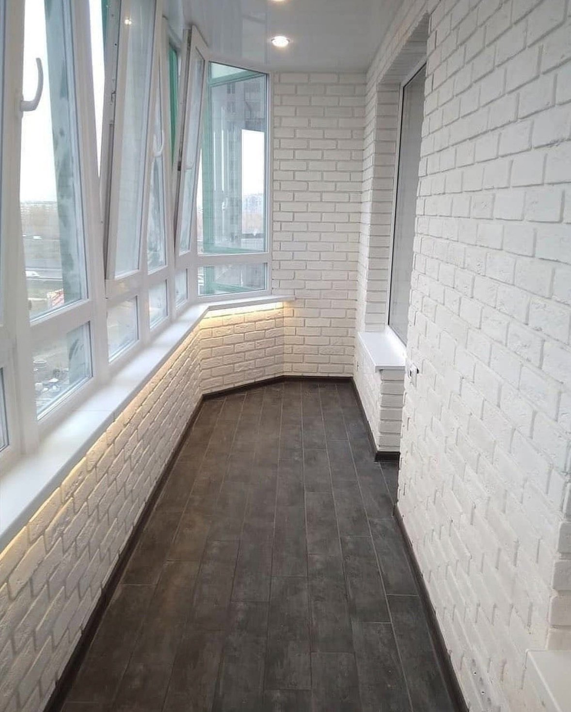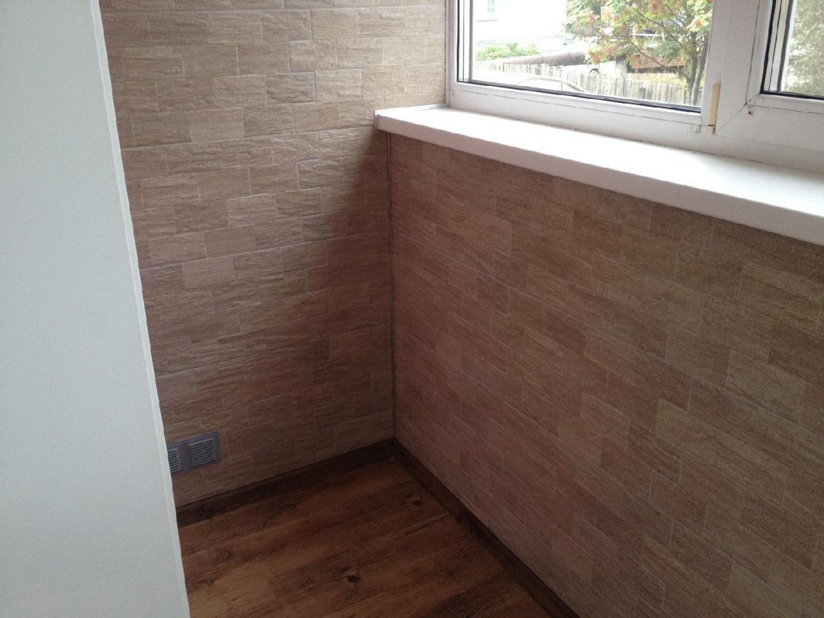 Отделка балкона под кирпич