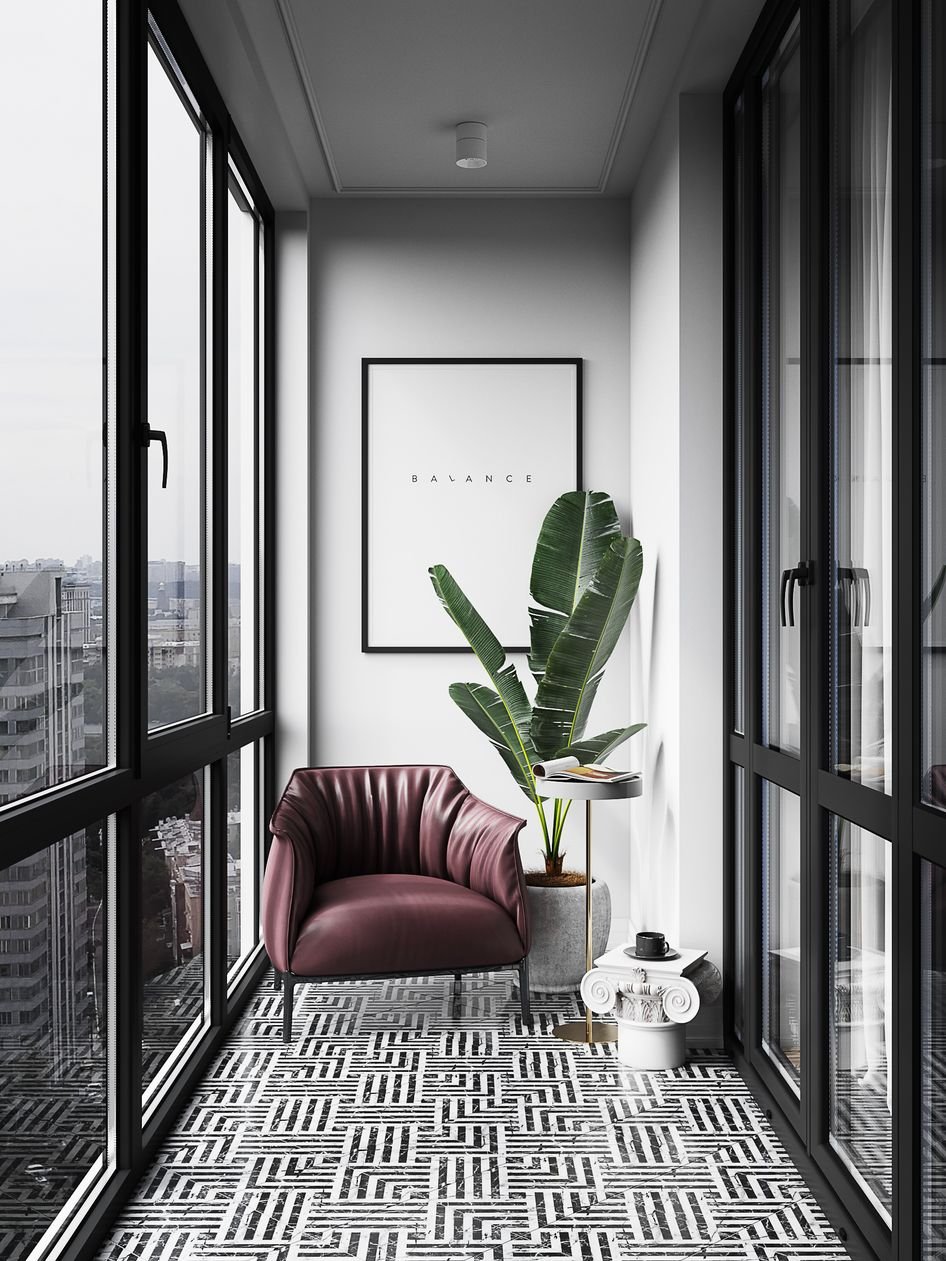 Балкон в черно белом стиле