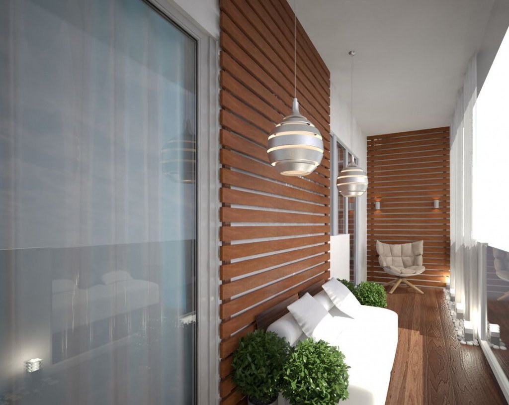 Отделка балкона рейками