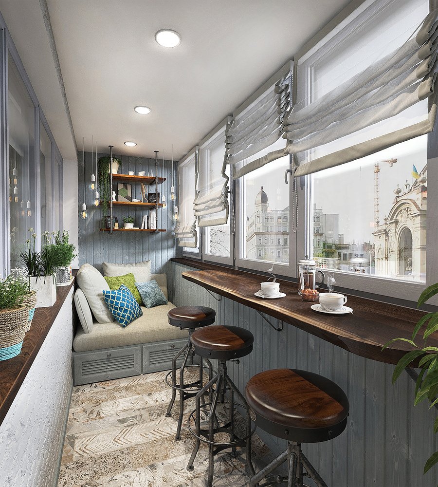 Современная отделка балкона внутри